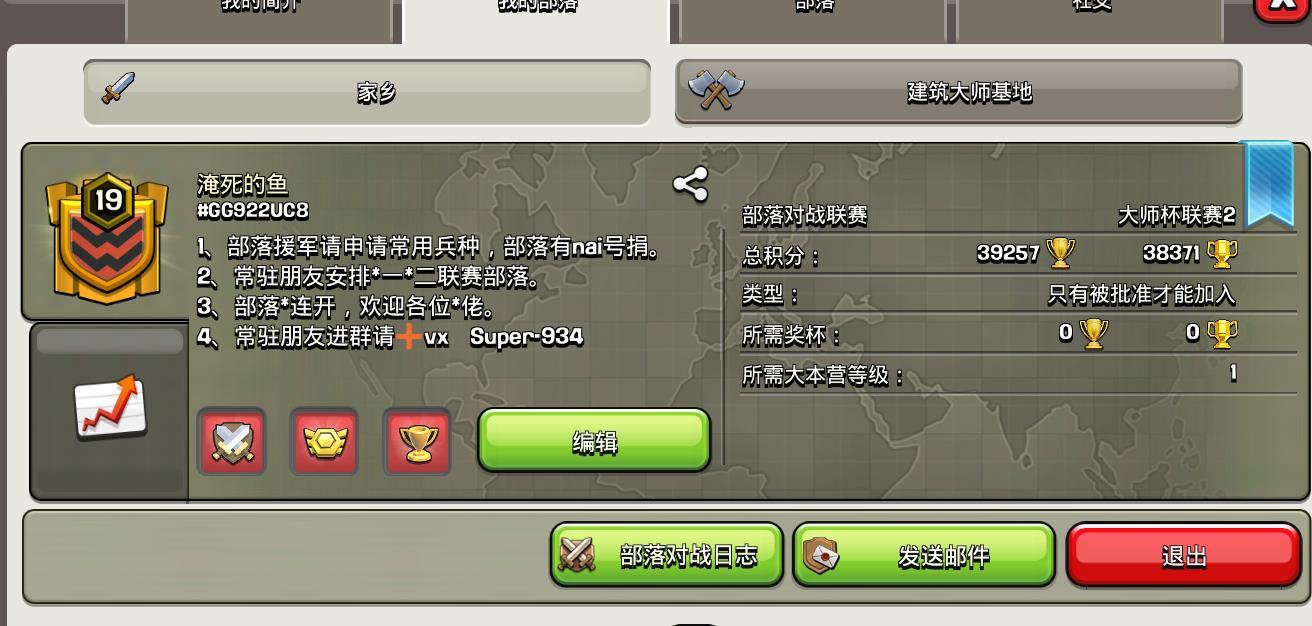 国服即将更新,欢迎回归老玩家,入坑萌新的加入,一起发育努力!超级部队常开有助发育!部落名:头号玩家 #2QJG8VUGQ部落都城即将来袭,欢迎各路玩家加入,一起拿奖章,部落战连开,竞赛保满!也可以加我 #YC2GP9UUYQ:2640356078
