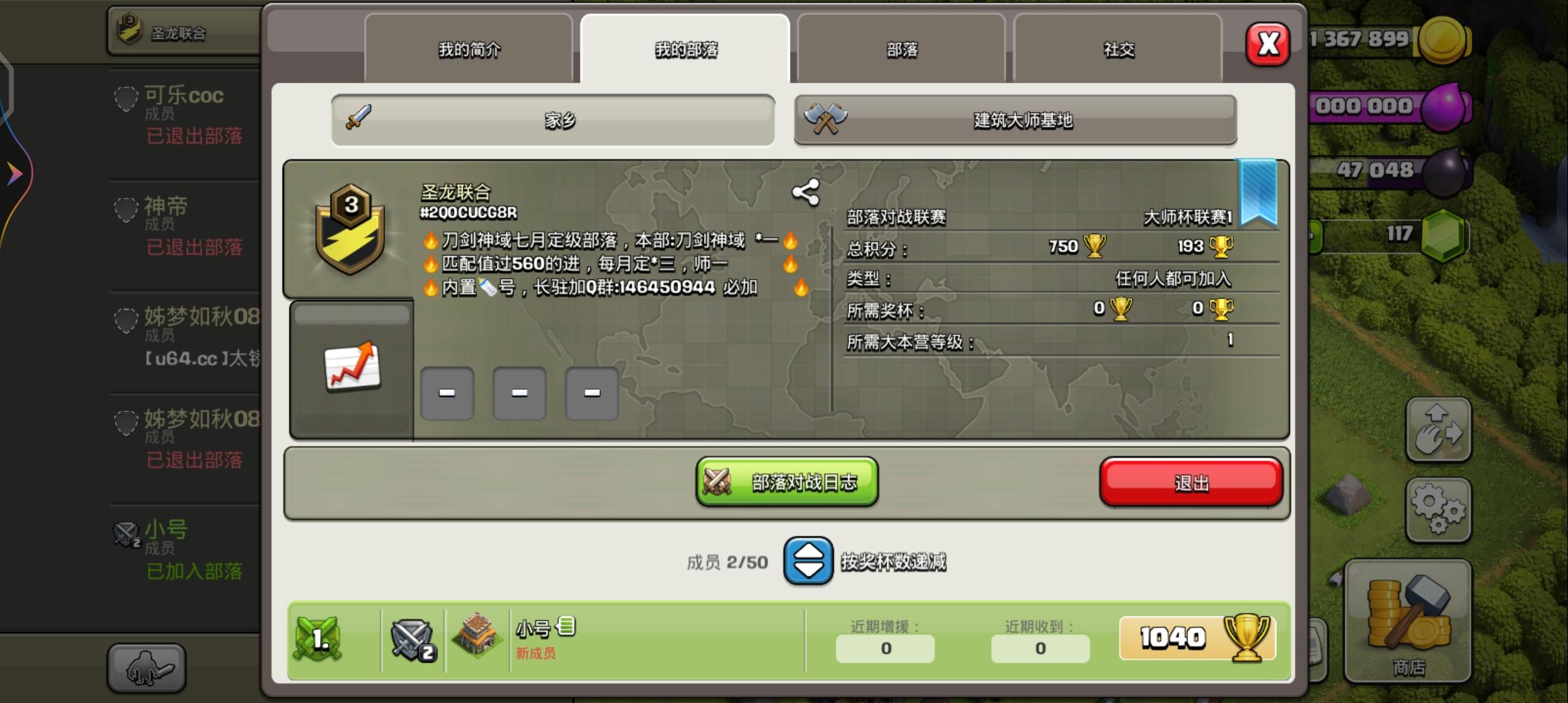 联赛结束,看看我们和第二名之间巨大的差距。一个部落联赛能取得压倒性胜利除了硬实力外,部落的和谐活跃纪律等等都需要无瑕。如果你是联赛实力派,不速的12本以上,来感受玲离尽致的联赛胜利快感吧。我们下赛季还有五个成员指标,我们24小时双乃为你提供捐兵,来吧。