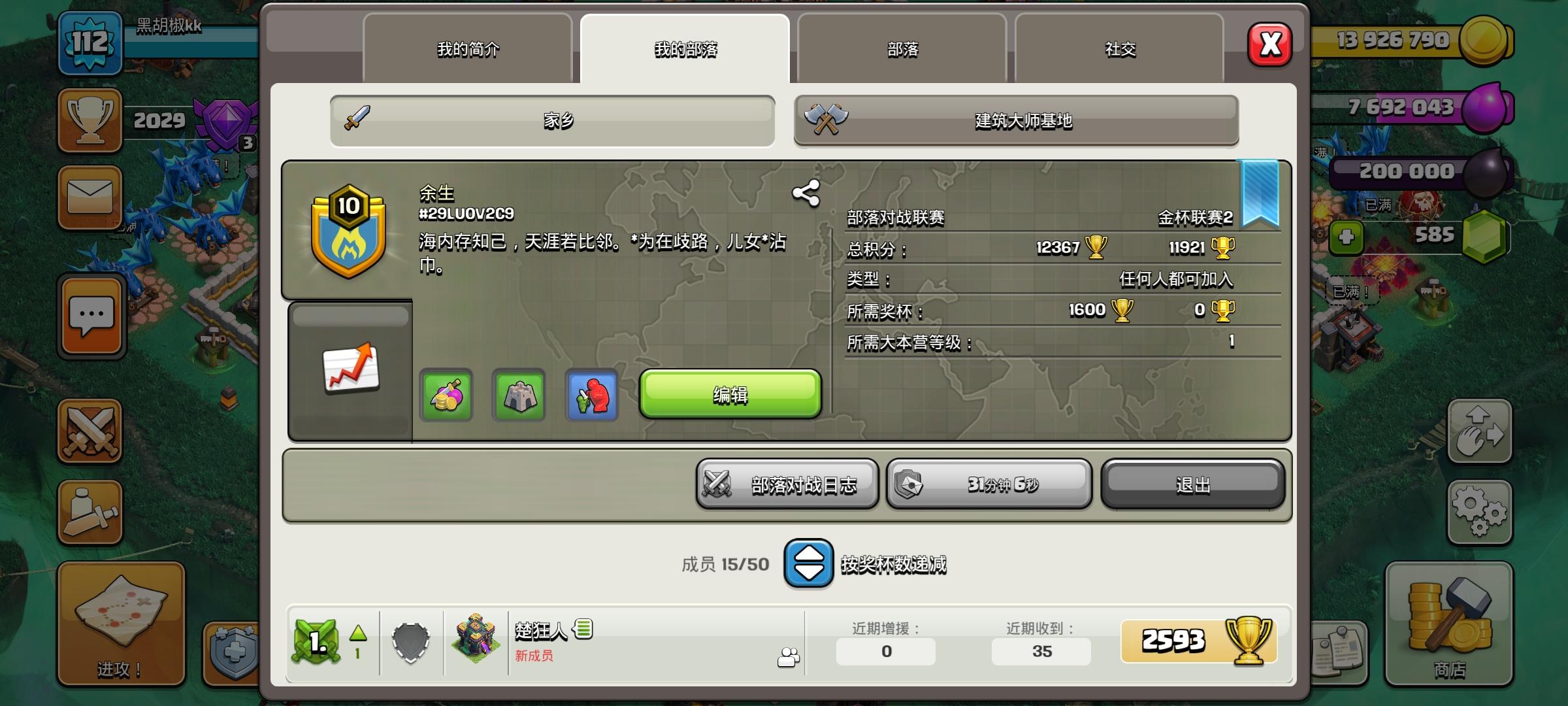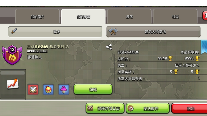 #200CJCJLC部落重建,招手新手老手,等级不限,无捐收要求,新人有长老职位。 联赛人齐即开,默认全带。欢迎各位大佬萌新养老玩家加入。