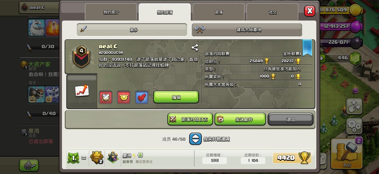 收十三本以上非速本活跃玩家 部落战连开 部落很活跃 有自动奶捐兵 群里也热闹 竞赛满 欢迎加入噢 群号:975676640