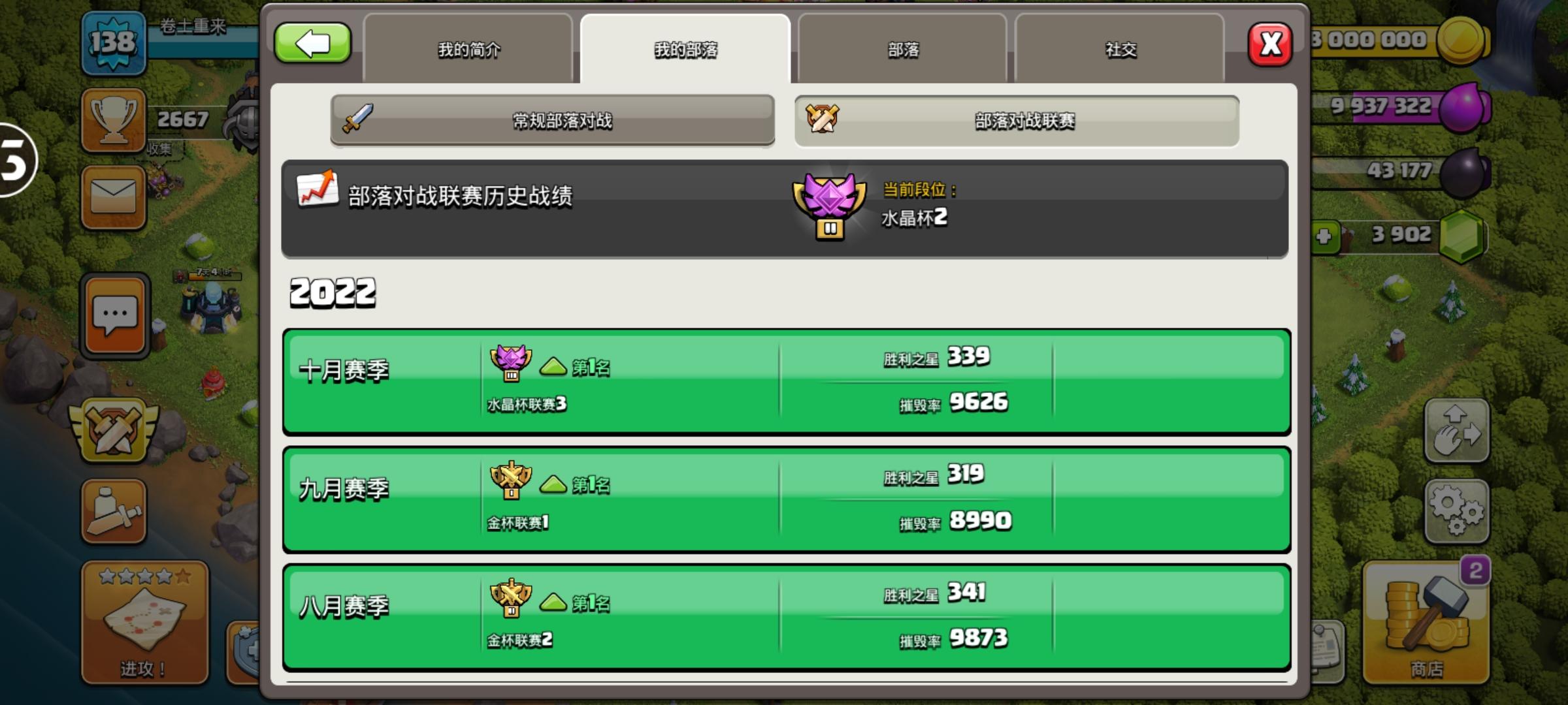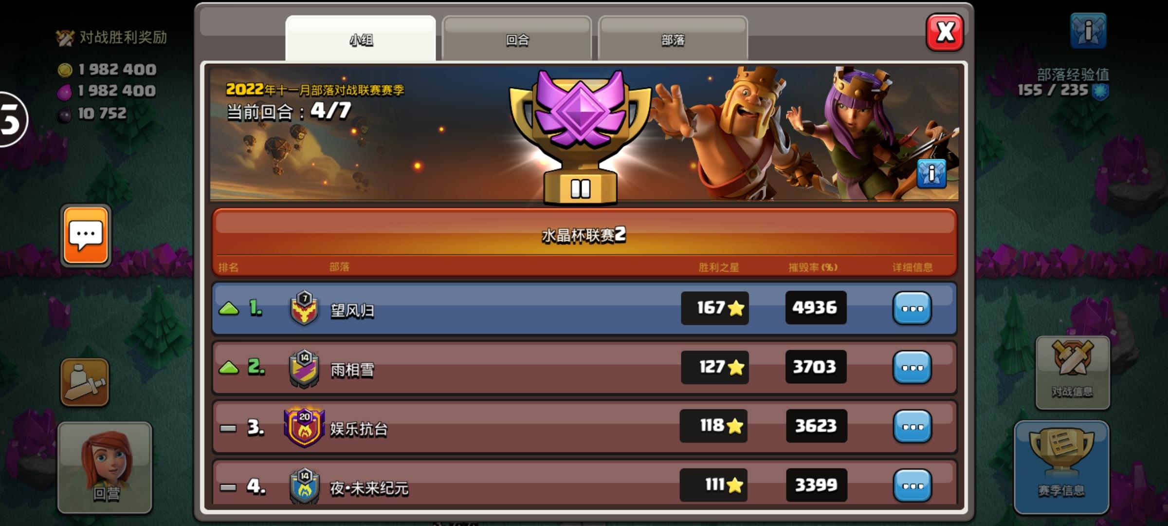 竞赛12w+,联赛结束水晶1,部落无奶,鼓励互捐。