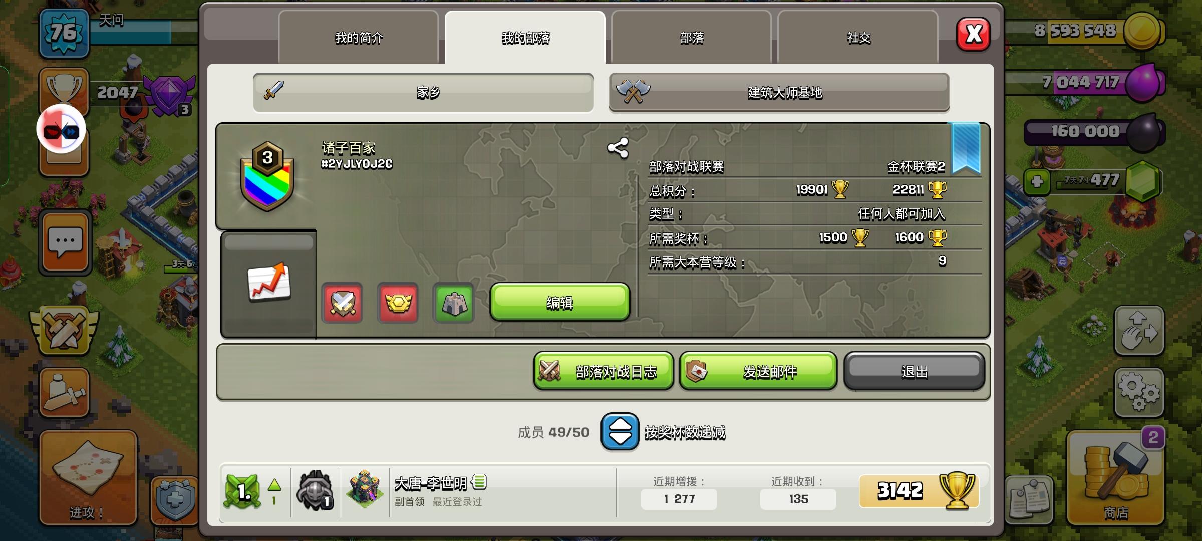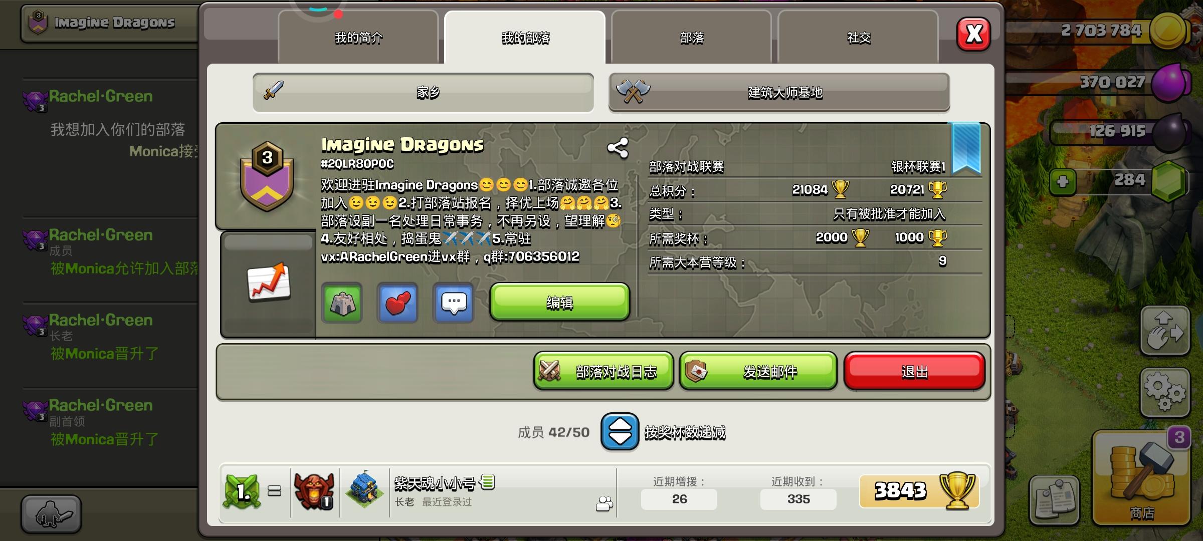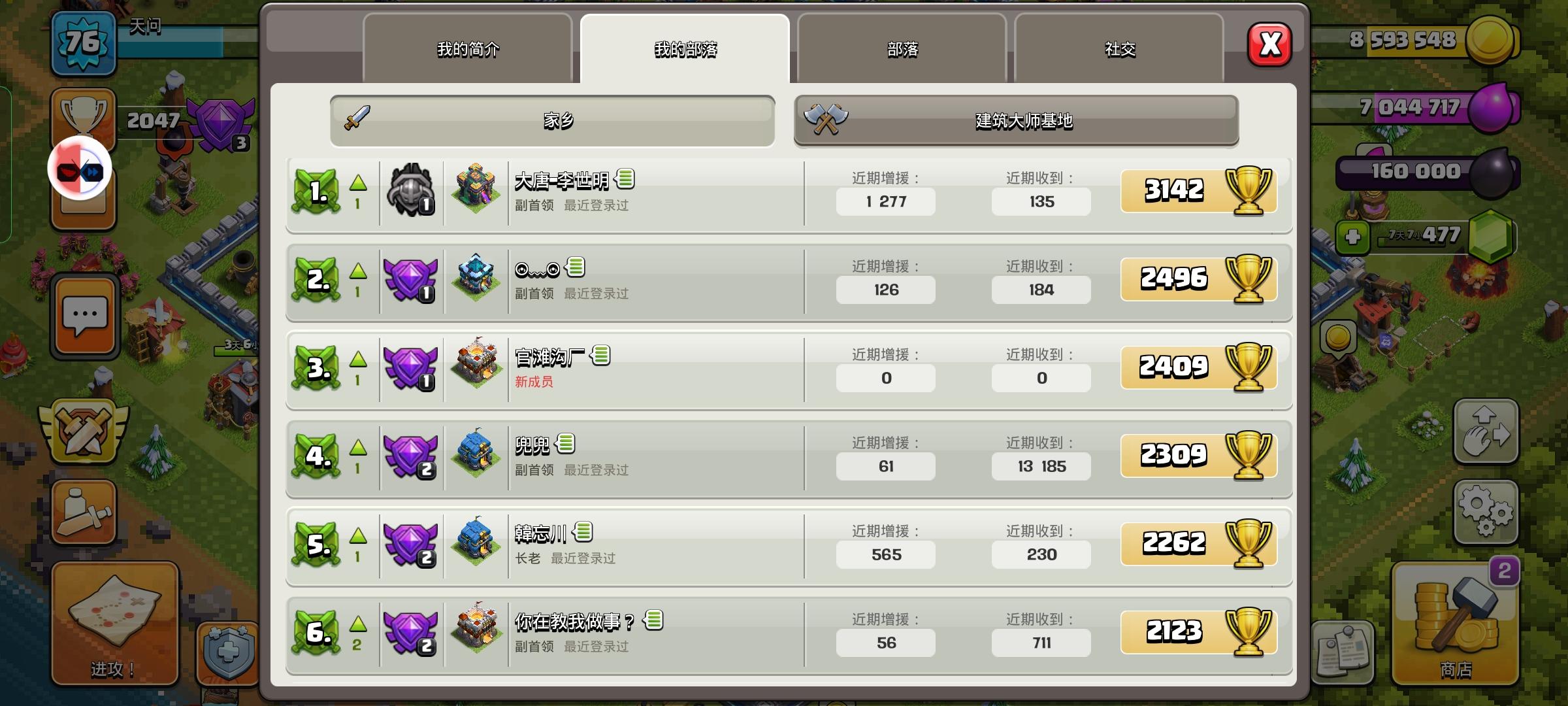 部落马上大更新啦!还没有找到活跃积极捐兵的部落就快来我们部落吧!我们部落不算太厉害,但是麻雀虽小,五脏俱全。不管你段位多低,技术多菜,只要日常活跃,我们一起努力!如果奖杯限制进不了,那就加首领好友,立马邀请你的到来!