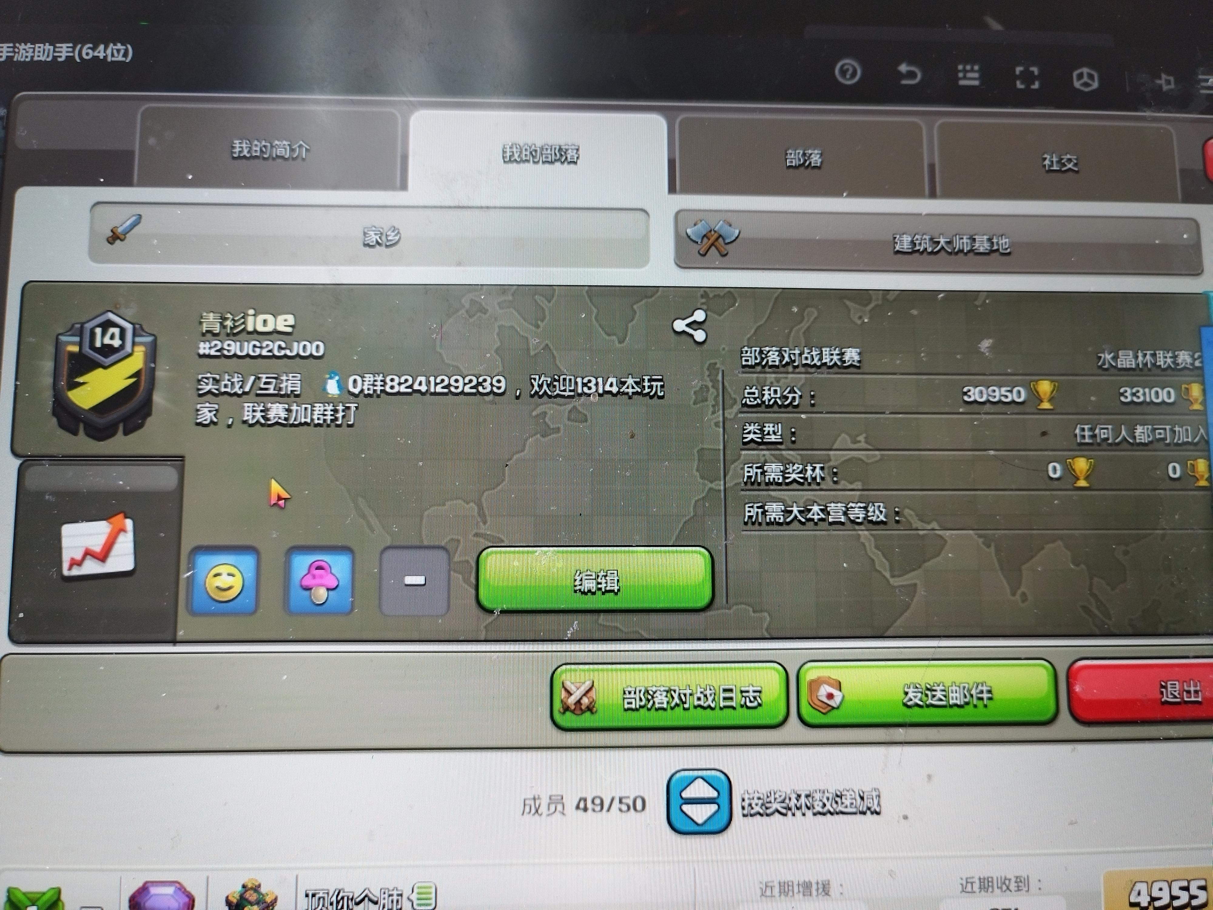 收十三本以上活跃玩家 部落战连开 部落很活跃 有自动奶捐兵 群里也热闹 竞赛满 欢迎加入噢 群号:975676640
