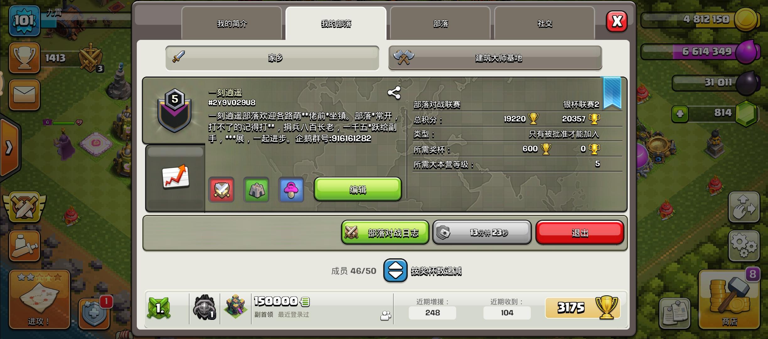 国服要更新15本了,大佬们回归了快来啊。联赛大师二,(联赛不翻车就大师一了)另有大师一联赛壳子,给部落后20位使用。有满24h自动奶,部落晋级有🧧奖励。竞赛当天必满,第一名有黄金令牌奖励,当日满4000可抽取一张黄金令牌。全员无死鱼,部落战连开。要求:可以 +部落裙,活跃14不速本即可。部落id#28GJPVCPU部落vY-W20210910