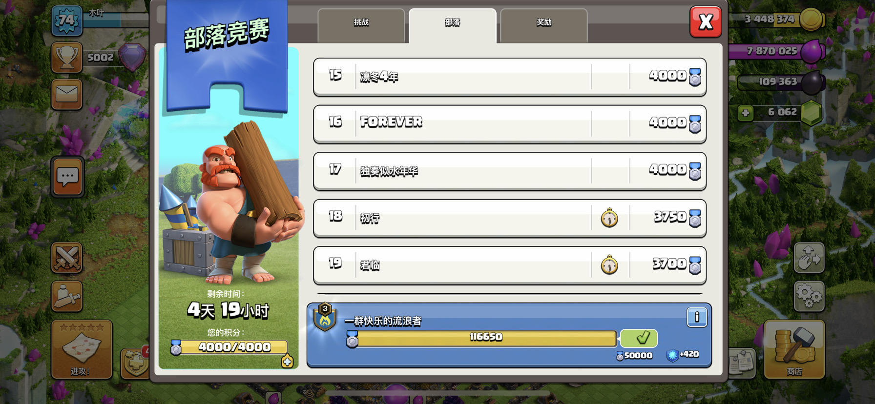 有部落要吗?10本即将满防,我个人不速本。部落战,联赛都正常打,4000的联赛能满。日常活跃,杯段黄金(主要打打死鱼),看情况冲杯。捐兵基本就狗球流了