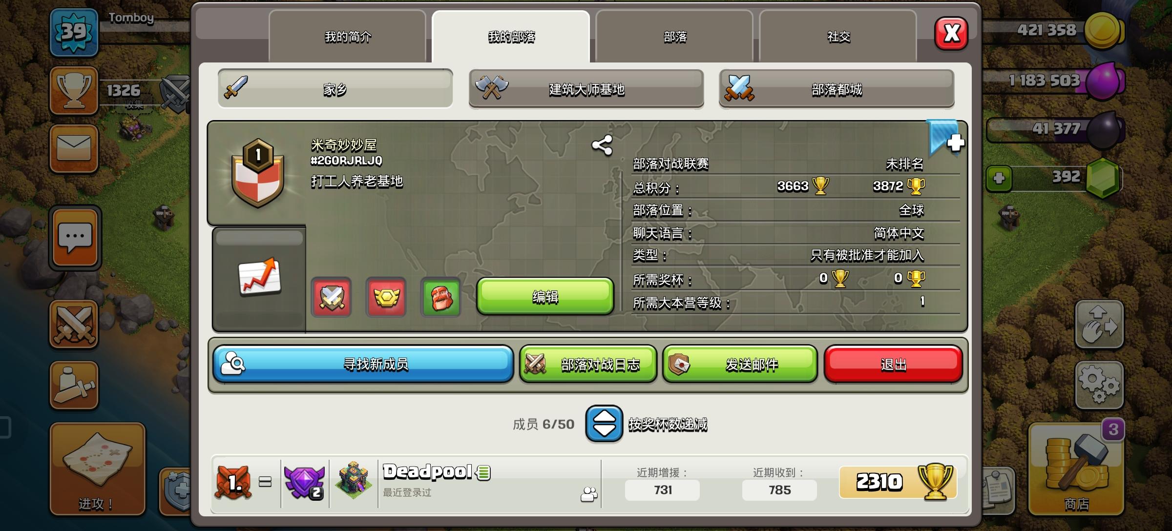 国际服新部落招人了,从国服转过来刚玩一周,活动部落战首领们全包,养老休闲好战分子都欢迎,部落有十四本捐兵号部落标签:#2G0RJRLJQ
