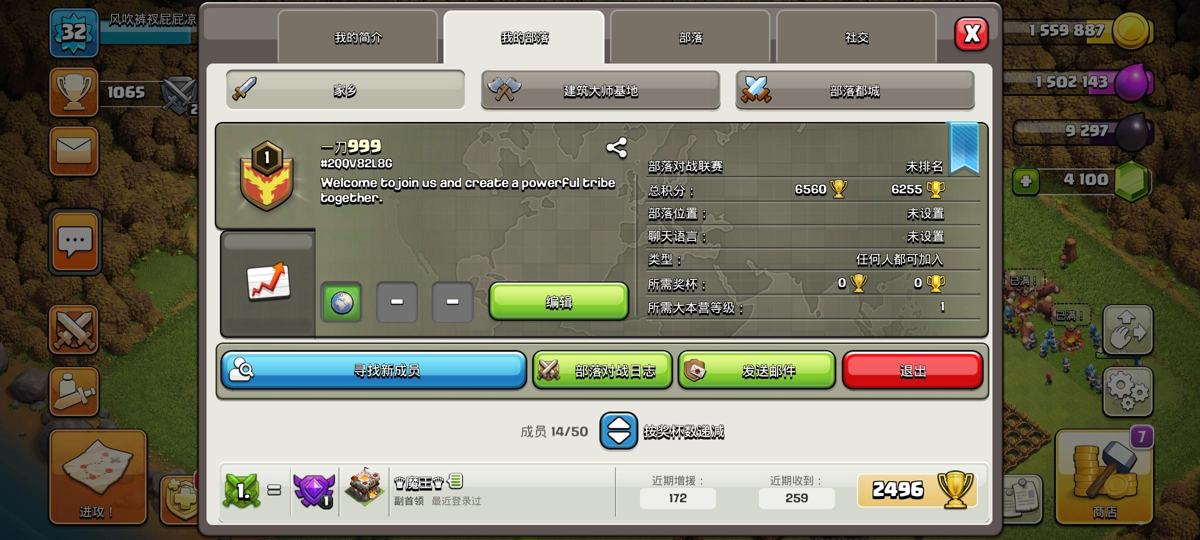 #2QRU0GRPG有人加部落吗?目前三个人,人够就打部落战,只要活跃的,无家可归的宝宝们,内有14本大佬捐兵