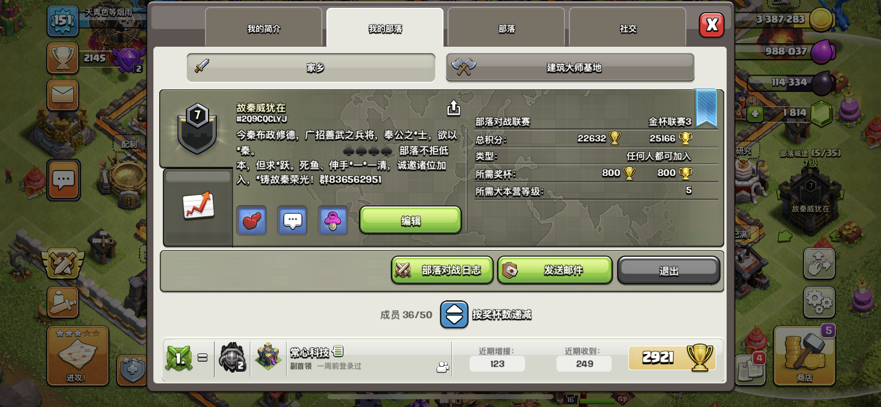 老部落了,部落里高本发育稳定,中低本也保持活跃,部落战连开,联赛有大师1的壳子稳定混联赛币,微信群日常开车聊天。但是,速本和天经地义伸手党勿扰噢(女生无要求,来就是团宠)铁子们快来吧,部落清了一波死鱼,又空出好多位置,快来快来!标签放评论区,方便复制,萌新还可以直接加游戏首领好友,然后邀请进部落哈