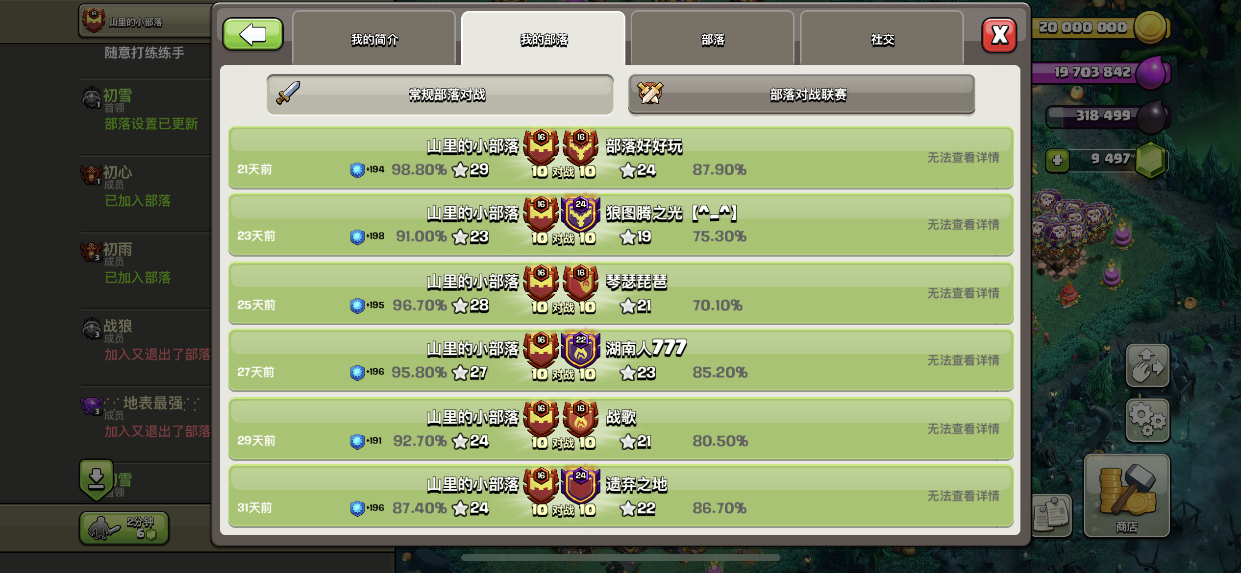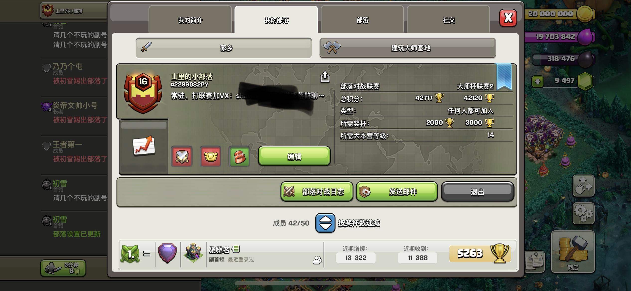 两个号,找个可以打部落战的部落,现在加的都不带我玩,日常活跃玩家,基本上每天都上线好几次,两个号一起加