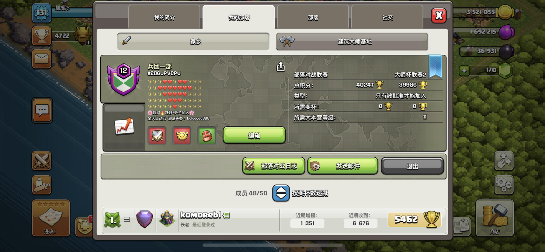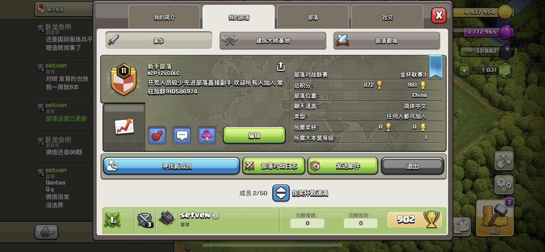 老部落了,部落里高本发育稳定,中低本也保持活跃,部落战连开,联赛有大师1的壳子稳定混联赛币,微信群日常开车聊天。但是,速本和天经地义伸手党勿扰噢(女生无要求,来就是团宠)铁子们快来吧,部落清了一波死鱼,又空出好多位置,快来快来!标签放评论区,方便复制,萌新还可以直接加游戏首领好友,然后邀请进部落哈