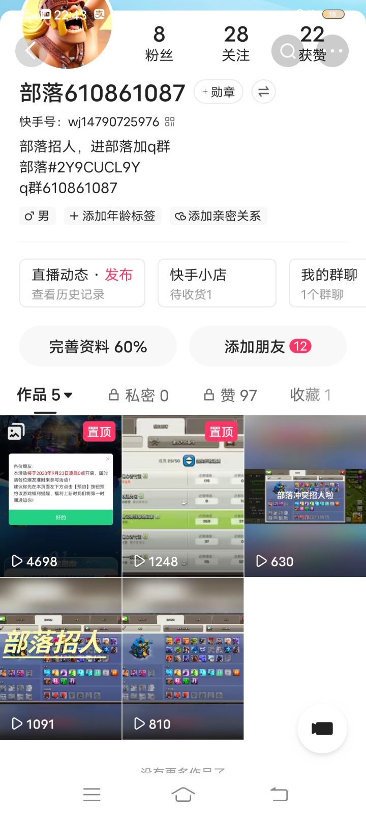 欢迎各路大神加入,本部落为战营,部落战常开编号#2QRLU89JY#部落冲突招人
