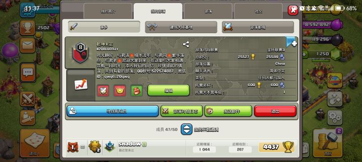 #2QQC8U0J2积极参与都城战,联赛,都会给副手,这样可以让所有人充分体验都城战。咸鱼养老部落,不强制打部落战,拉了你,你想打就打,不想打也无所谓。部落名称:蜀汉海贼团#部落冲突#部落冲突招人