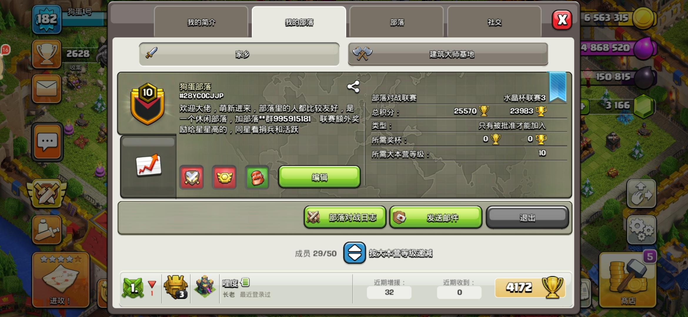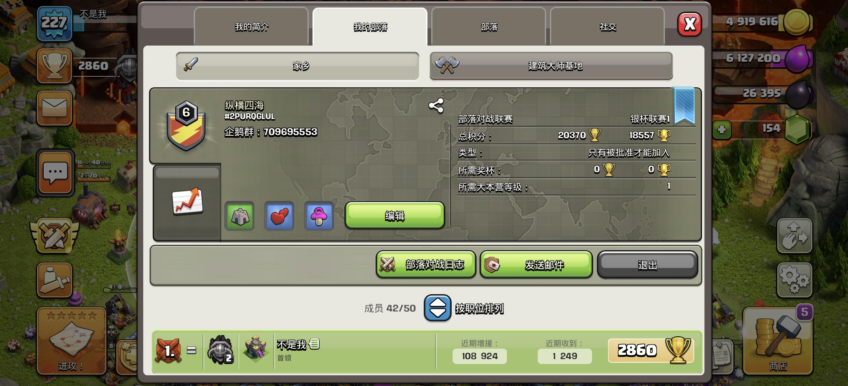 国服部落 微信有群 不定时红包 诚招常驻玩家 可以养老 气氛良好群里有大聪明和小机灵 大本等级不足 奖杯不足可以改 #2PQV8P098 首领wxyyyyy–2004 欢迎加入 😋😋