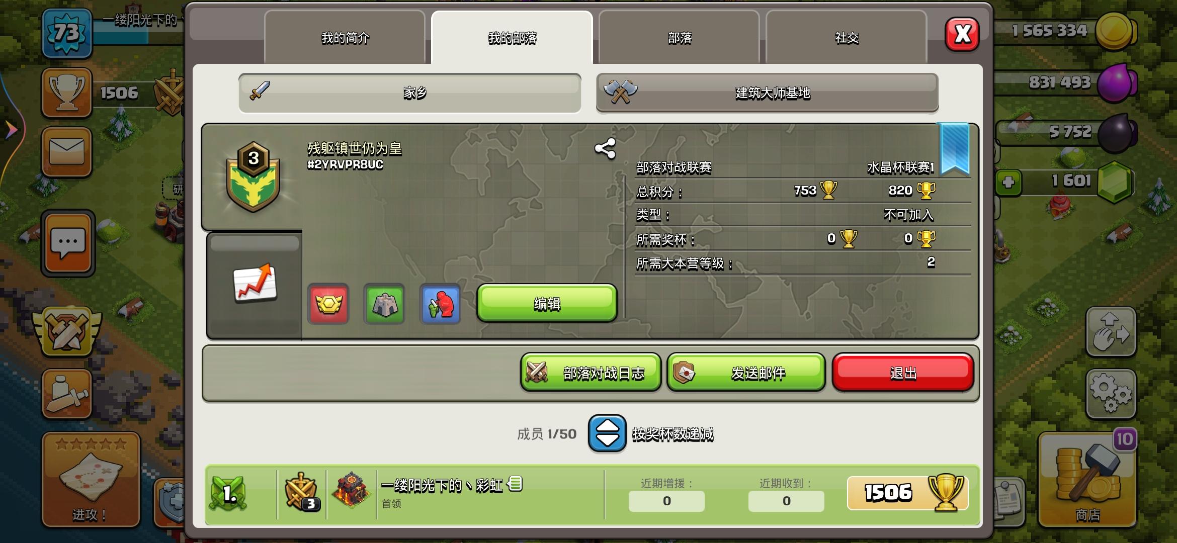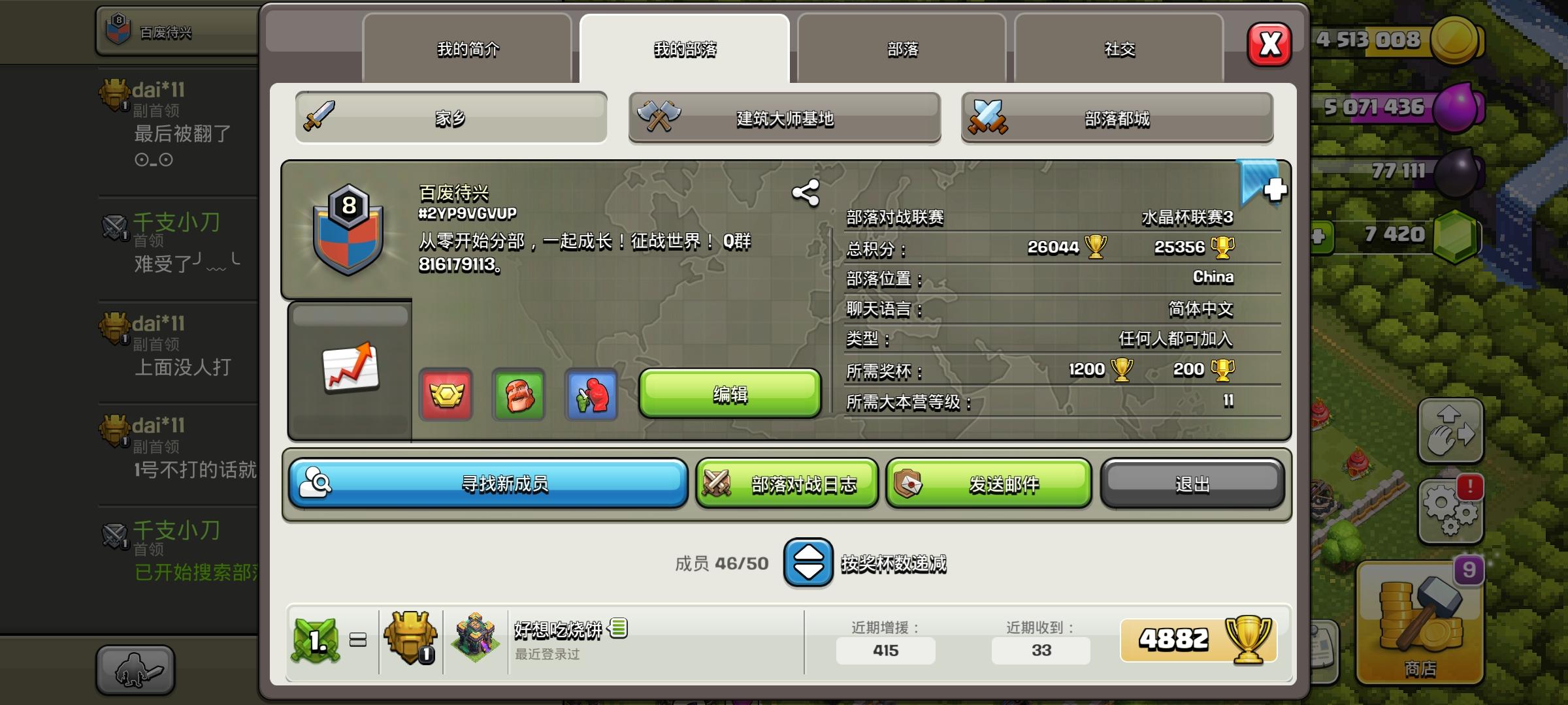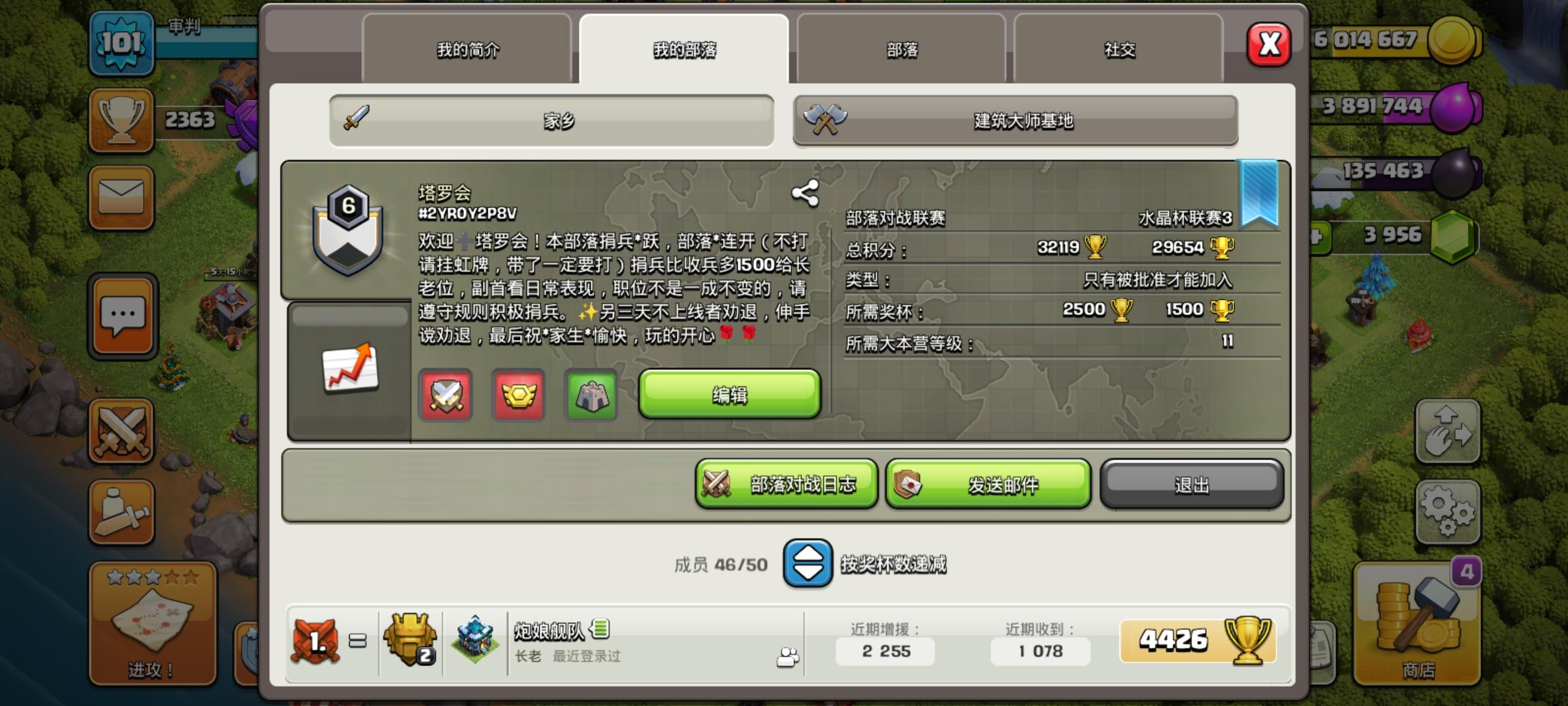 部落收人啦,本部落非常活跃,信仰唯一的真神袜舅部落战连开,可以整活也可以当咸鱼,欢迎各位新老玩家加入本人ID:Dio部落标签#29PY2LGVJ欢迎大家进来玩