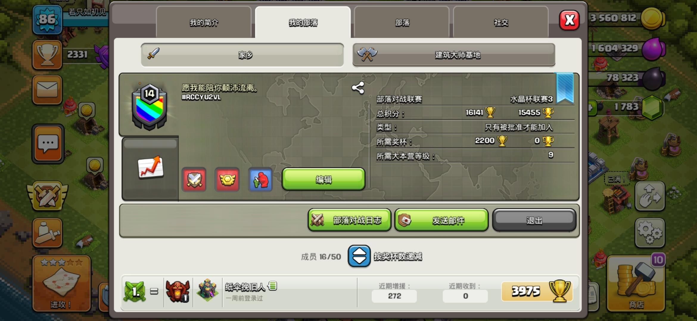 #2Y2LJPCQ0部落从铜杯3一路打上来的,结识了很多朋友,也走了很多兄弟,目前群里34个人,欢迎12本以上的朋友加入要求:打的不好可以练,就一个要求可以加群