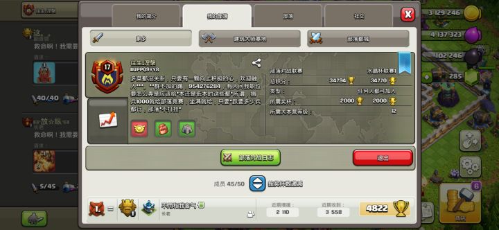 部落冲突在线摇人 加入部落咱们一块努力 各个活动都参加 每天活跃 本人保证 不在线一礼拜以上的人 一律踢出 长时间不参加活动的人一律踢出 部落名称:哪吒他二哥 #2YPJP0PVY 微信区 有意者加入我们大集体