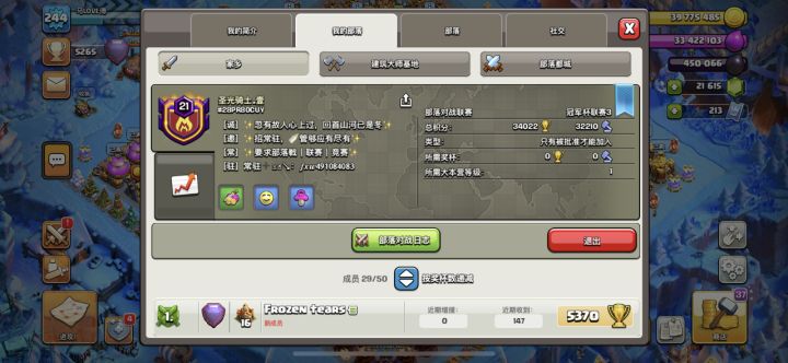 联赛段位水晶二,都城九级,部落战连开,欢迎真心热爱游戏的人加入。