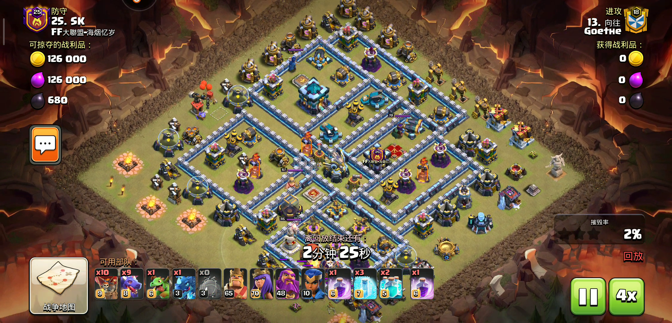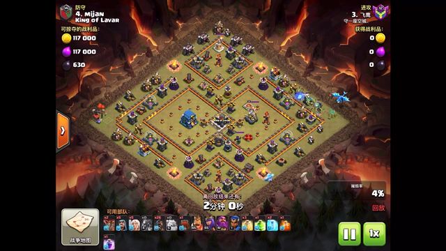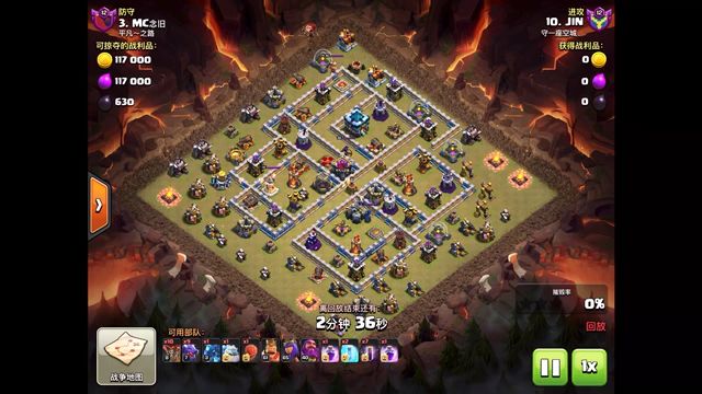 感谢飞鹰大佬带来的三星,冰石蛮王配合电龙顺利清边,天女车顺利进入灭掉天鹰援兵女王