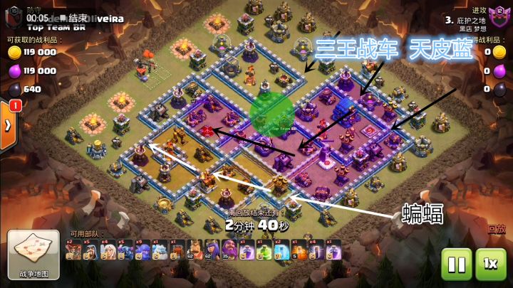 12部落战的打法很多,而“天皮流”是最近兴起的流派。也许部分首领会认为天使已经被削弱了,天皮实在很难发挥。其实不然,天使的调整主要调整治疗半径,那么只是在治疗皮卡的时候范围缩小了,但是其他不变。所以这一调整不影响整体的战斗节奏,只要有狂暴法术的加成,半径缩小这个问题就基本不存在。今天就带各位首领领略一下12本部落战”天皮流”的威力。阵型分析天皮流的打法就是前期把天皮的进攻路线做一个规划,之后再