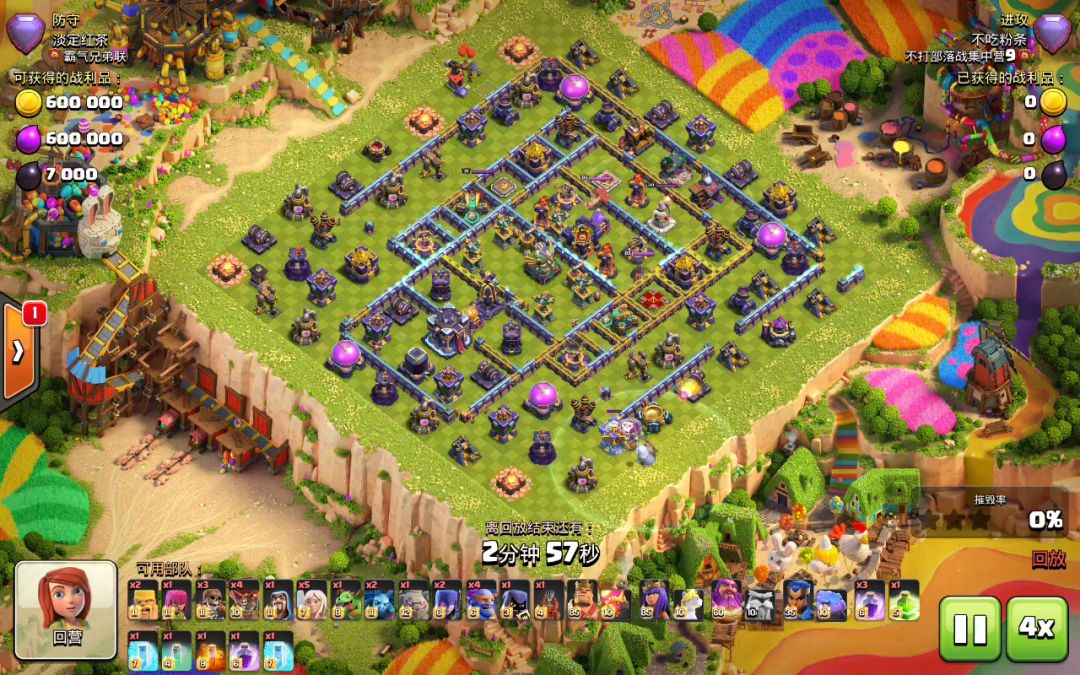 称霸暗夜挑战上线已有几日了,官微菌给大家带来了保姆级教程,学会之后赶紧去取回属于自己的奖励吧!首先我们在3点钟方向放下攻城飞艇,优先打掉投石炮。当飞艇快要被击落的时候,在加农炮右侧放下弓箭女皇吸引一部分伤害。女皇因为有战宠独角跟随,而且我们还留有5个天使,所以完全不用担心女皇血量过低的问题。 等飞艇被击落时,使用狂暴药水,让飞艇里的两只雪怪拆完3点方向的建筑(如遇雪怪向下走时,请尝试微调飞艇放