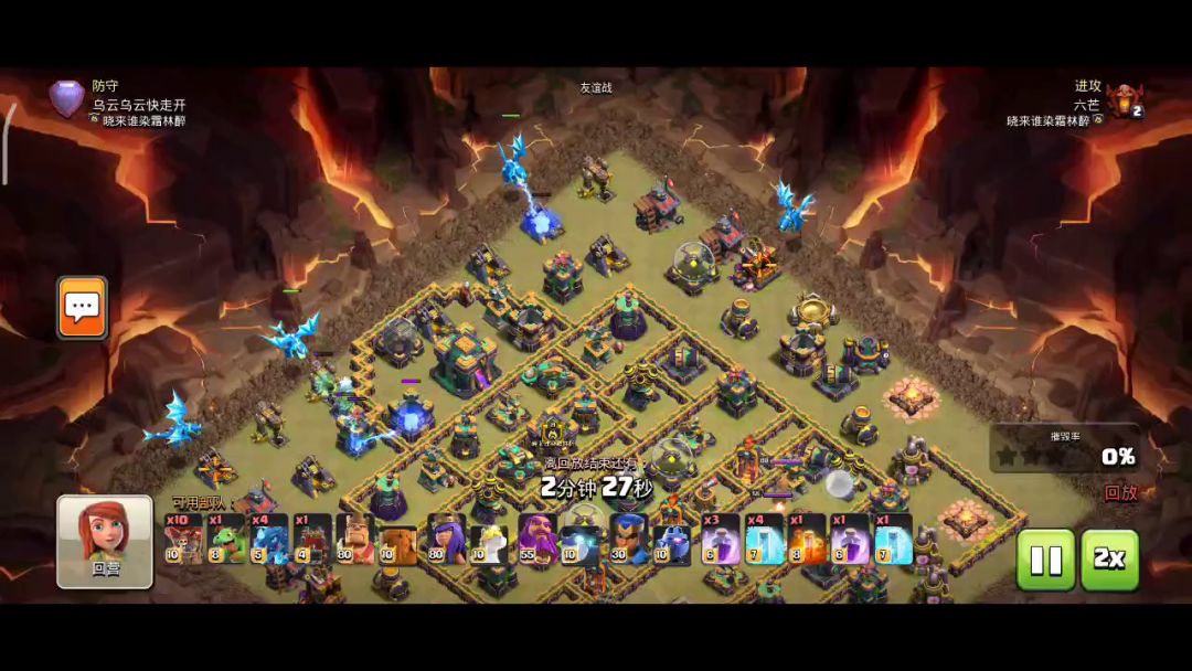 一种新的打法(至少我没见过)先上视频目标阵型:格子阵,大本在外环。打法:雷龙加少量法术爆本加清边,然后四王加攻城(看情况选)进阵配合剩余的大量法术推平。注意:爆本优先,永王大招要盖住蛮子,蛮子半血开大永王同时开大,狂暴尽量给闰土和蛮子,冰冻不要省。