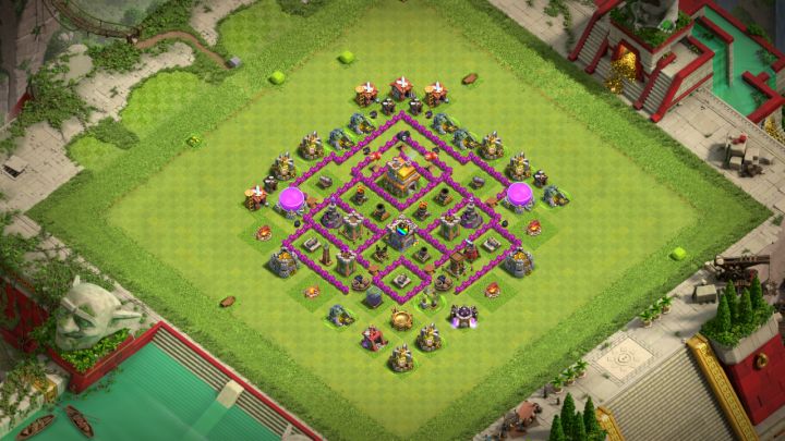这是我本人自己创造的一个七本部落战阵型,方便大家使用