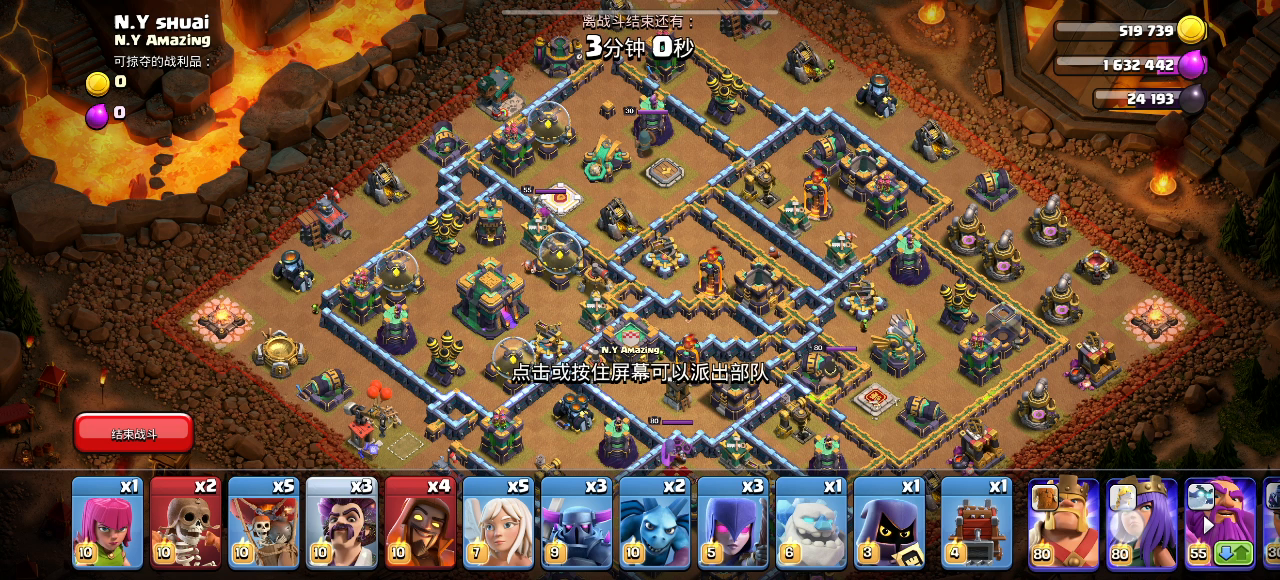 好久没玩这个部落冲突了,今天上线打几把,开局直接给我匹配到一个,等级差距很大了