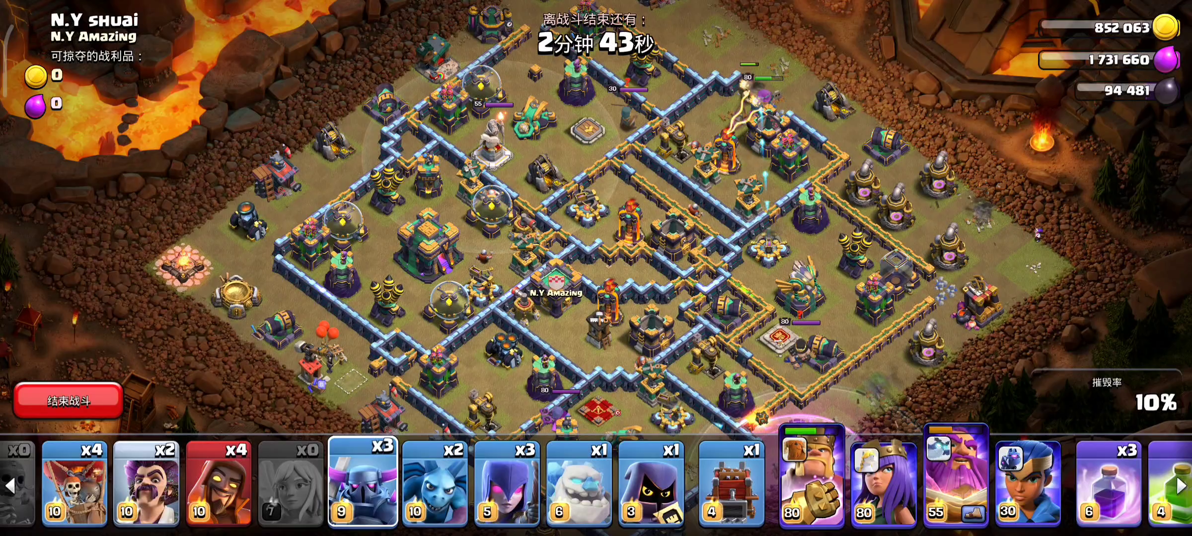 Suai的比赛我看过几次,他习惯用天女滚木车➕永王飞盾两路打前戏,无敌给到的是飞盾身上,最后给上没有极速的气球收尾,堪称《四王打全部》😱。 这次活动虽迟但到,不敢说一次打过,目的也是希望大家能顺利通过🥰。唯一需要注意的是永王最后一击打掉投石炮的同时要用皮卡把他引到大部队路线,否则会被女王A掉🧐。前期注意无敌保护好超法就行啦🤗。愿大家都可以顺利通过!还有就是——祝大家中秋节快乐!阖家欢乐!团团圆圆如满月🌕
