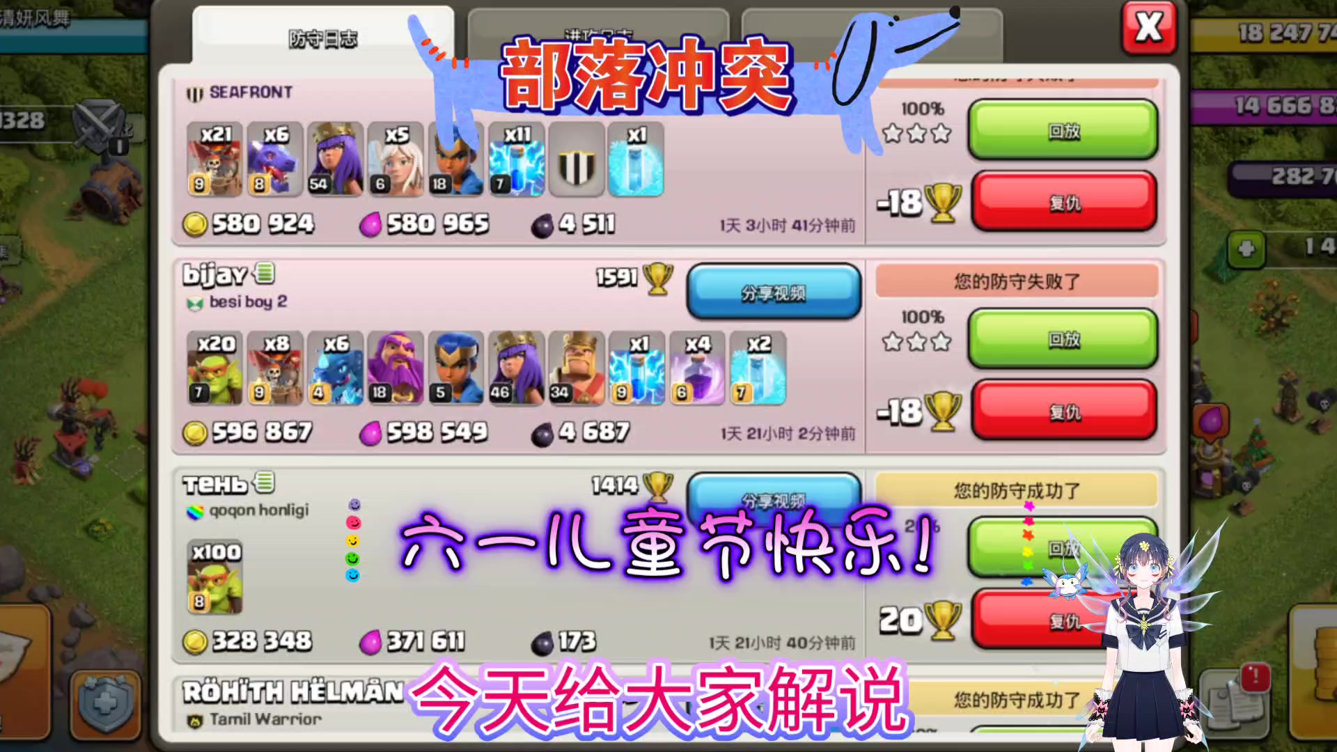 首先特别要祝福大家六一儿童节快乐,这局对面分工很明确,首先用闪电摧毁防空,然后通过冰冻,1:00方向进攻。