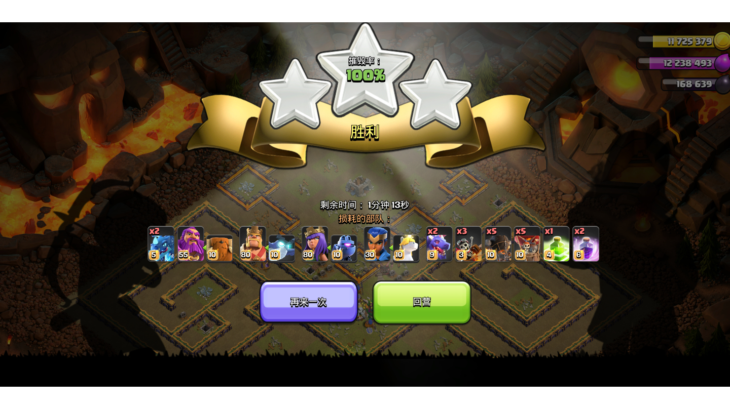 重火力建筑内置阵容,开车前冲,蓝胖跟上,大守护者给个关键狂暴,收尾下蝙蝠,就可以三星。