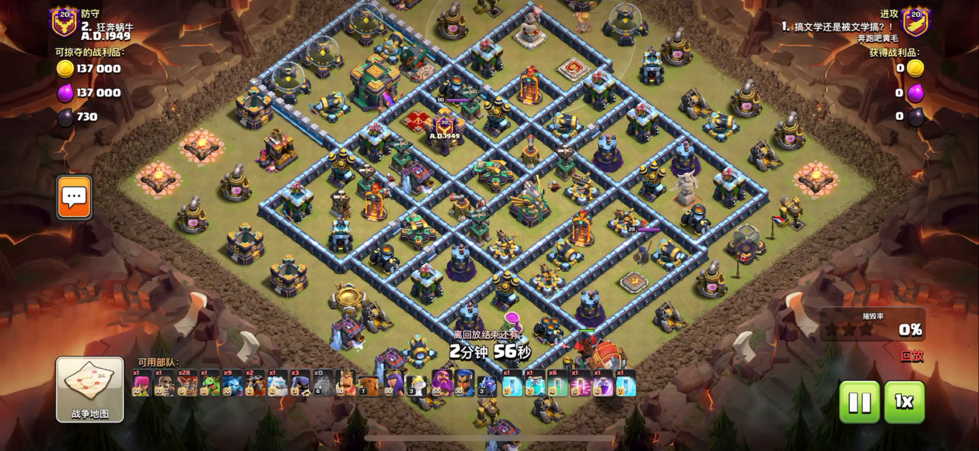这局对面很明智的选择我最弱的防御力,点进攻,我很佩服这家伙的聪明才智。