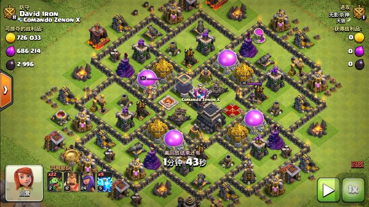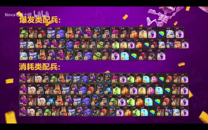Jiangjiang大家好,今天给大家带来的是夏季更新攻略第一弹:超级女巫无脑横推流(虽然也许可能只有一弹)首先,让我们看看配兵双弹跳,三狂暴,七大女巫,攻城训练营,援兵:九头猪,狂暴。接下来搜人,看阵:是一个开阔的平原阵型。🤔🤔🤔那么怎么打呢🧐🧐首先我给了六点两只大女巫,九点一个训练营和一只大女巫。因为是开阔平原,所以两个弹跳全丢下去,开路。接着敌人的援兵出来啦,是三个冰人