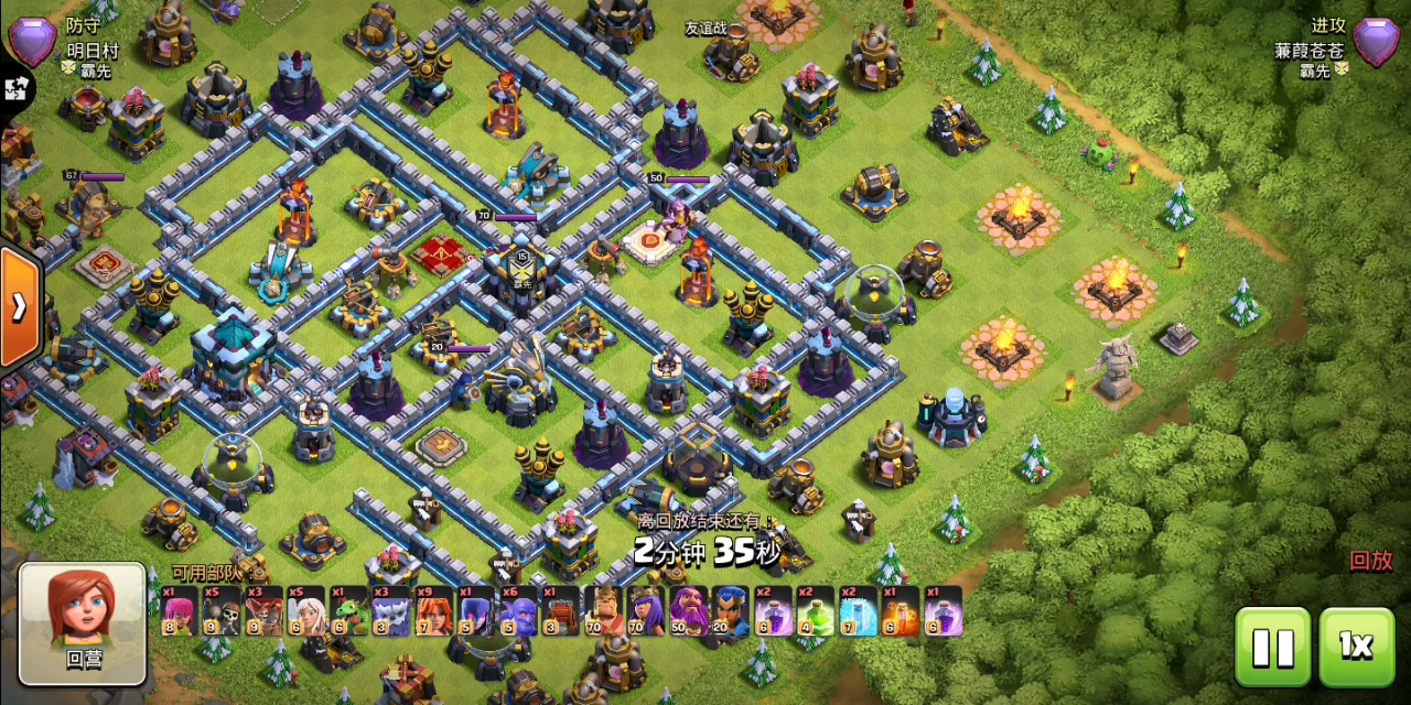 这是在看了B站维度大叔的武法天女流后有感而发开发出来的流派,因为是刚开发出的流派,只有大体的思路,利用天女清一边,蛮王女巫清一边,雪怪蓝胖保攻城车(反向开车),抗下第一发鸟炮后下武神,利用弹跳跟永王技能让武神掏空内部,最后攻城车拿下大本。