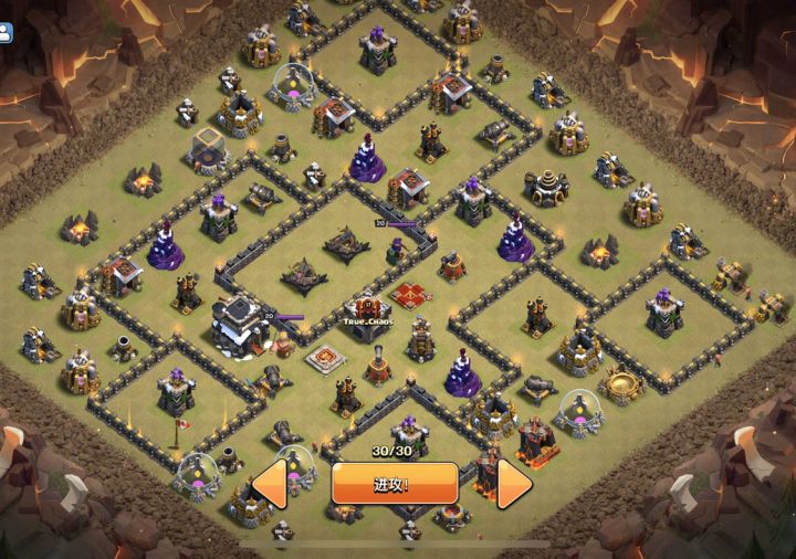 狗球流可谓是相当古老的流派了,从这个游戏发布熔岩猎犬这个兵种的时候狗球流就一直活跃在这个游戏的玩法里直到今天。众所周知狗球流是个比较极端的流派,要么三星,要么黑三,因为狗球流相当考验技术和操作,那么新人如何上手好玩的狗球流呢?咱们就一起来看看狗球流是如何推平部落战九本的吧。首先我们来分析一下敌方的阵型,敌方是一个大本营外置的部落战防三星阵,普通陆军进攻在看到其内置的部落城堡和连弩之后可能一时间没