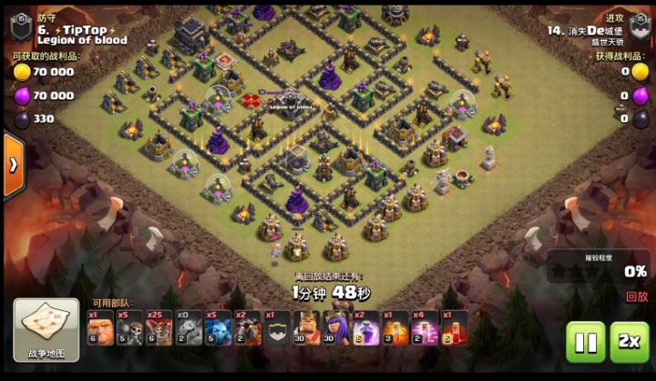 这个部落战,模拟打了很多次,同本下没人能破三星~援军是雷龙