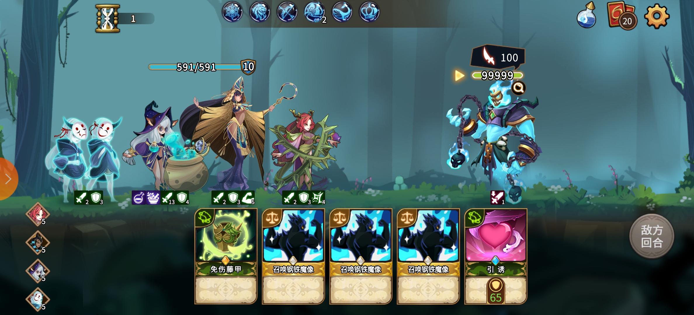 摄魂使BUG,无法召唤魔像,点结束回合没反应,点设置退出战斗退不了,换别的阵容也不行,三天都这样。
