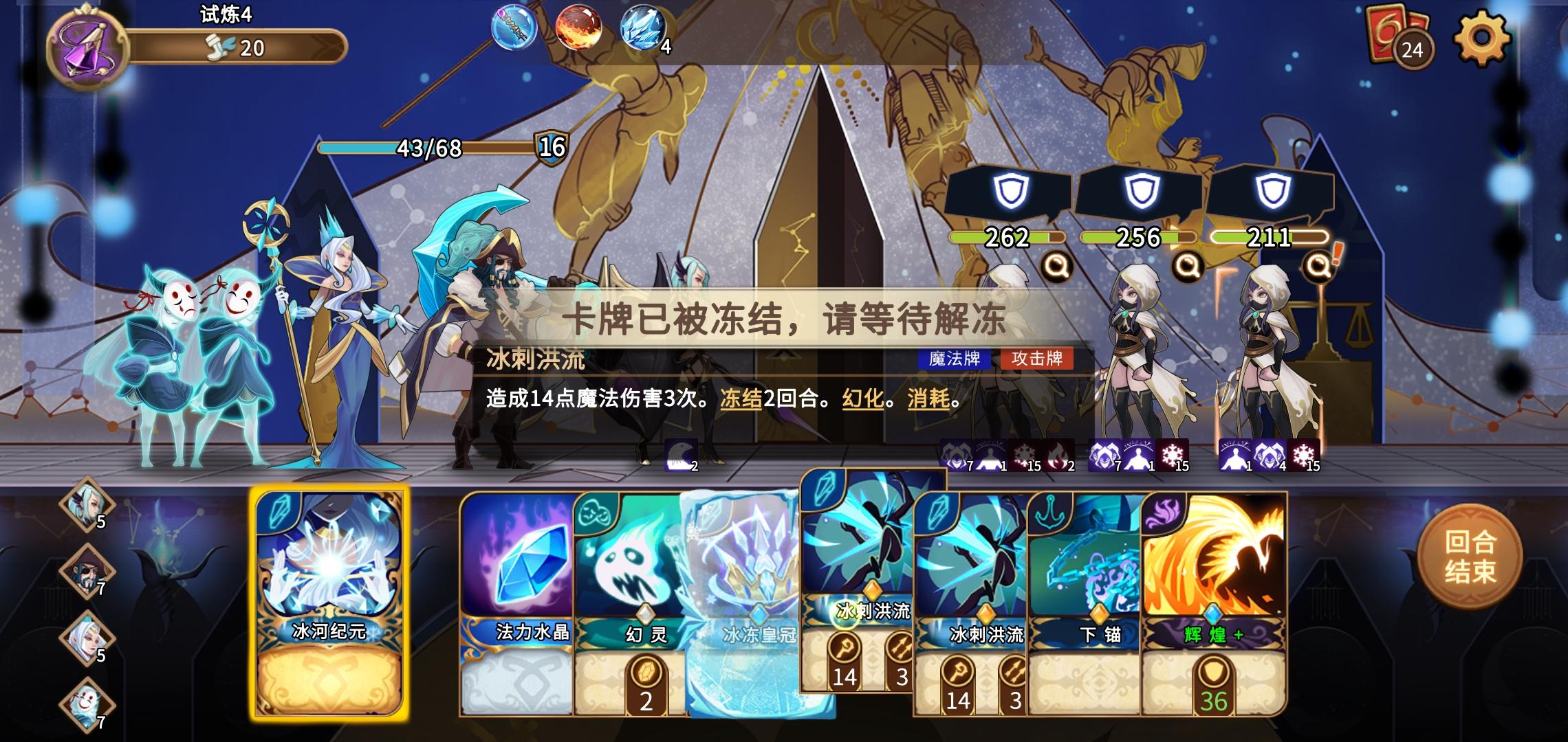 1.用镜像卡复制已冰冻的牌,再用朗姆酒解冻,两张卡均出现永冻现象,无论动画效果如何,皆无法打出。如图:2.十二宫强化过程冰冻显示错误。如图: