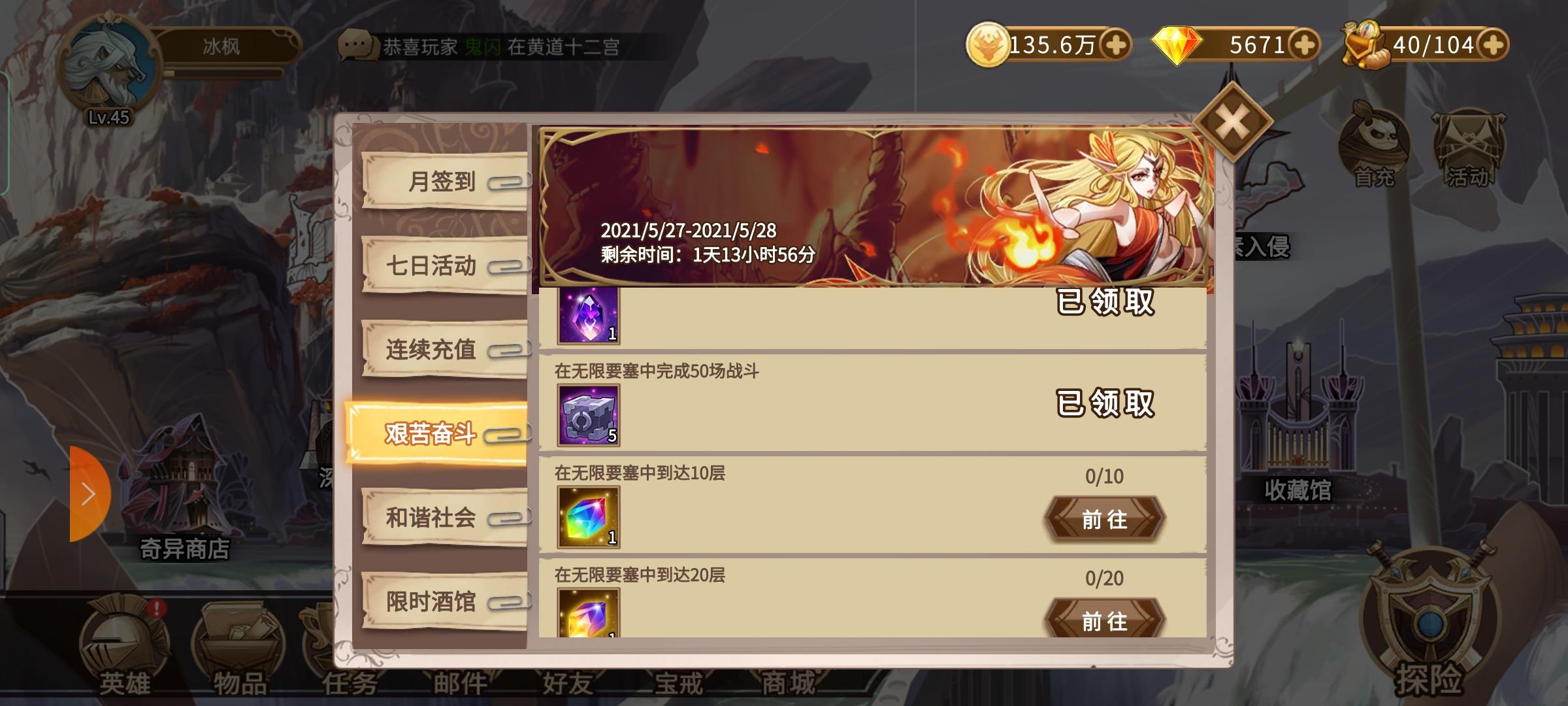 打到43层,无法领取奖励