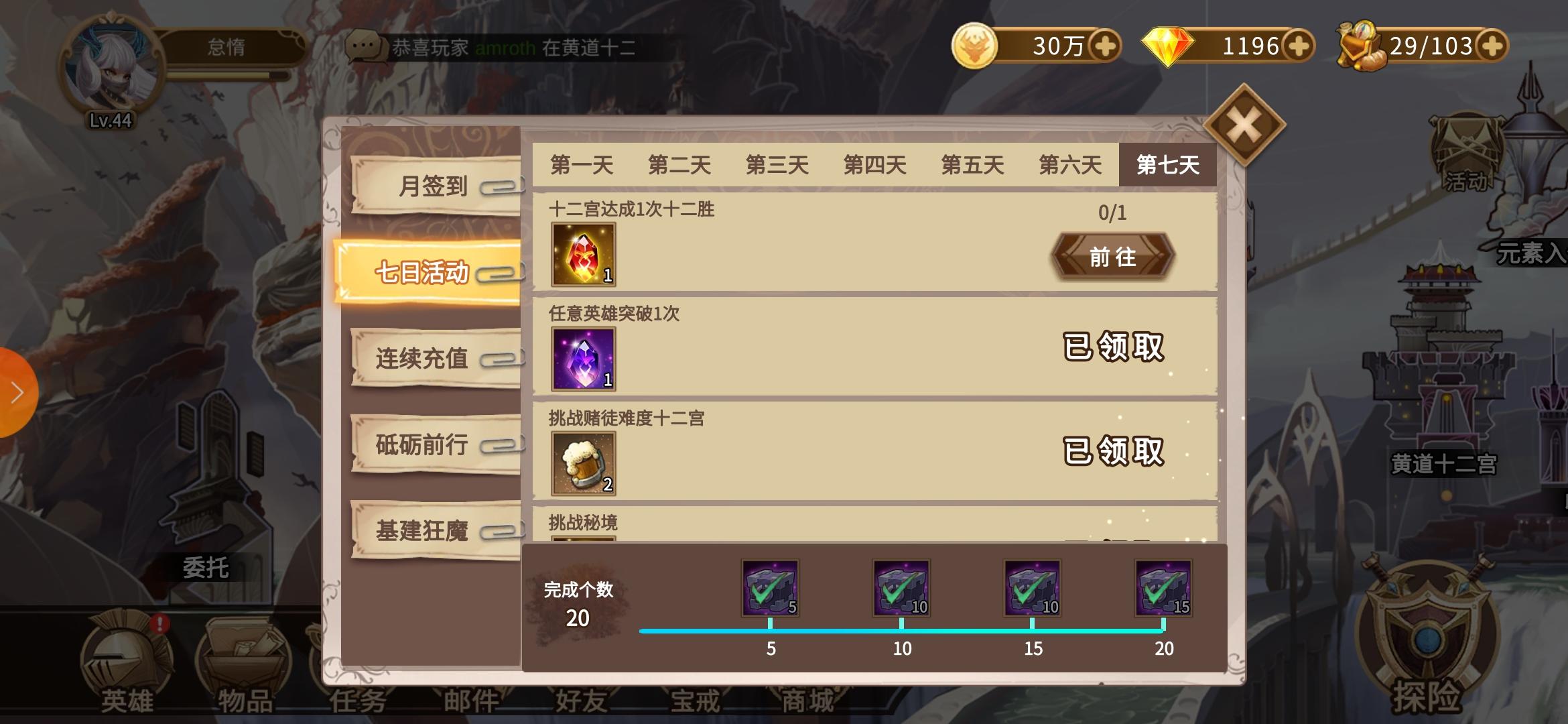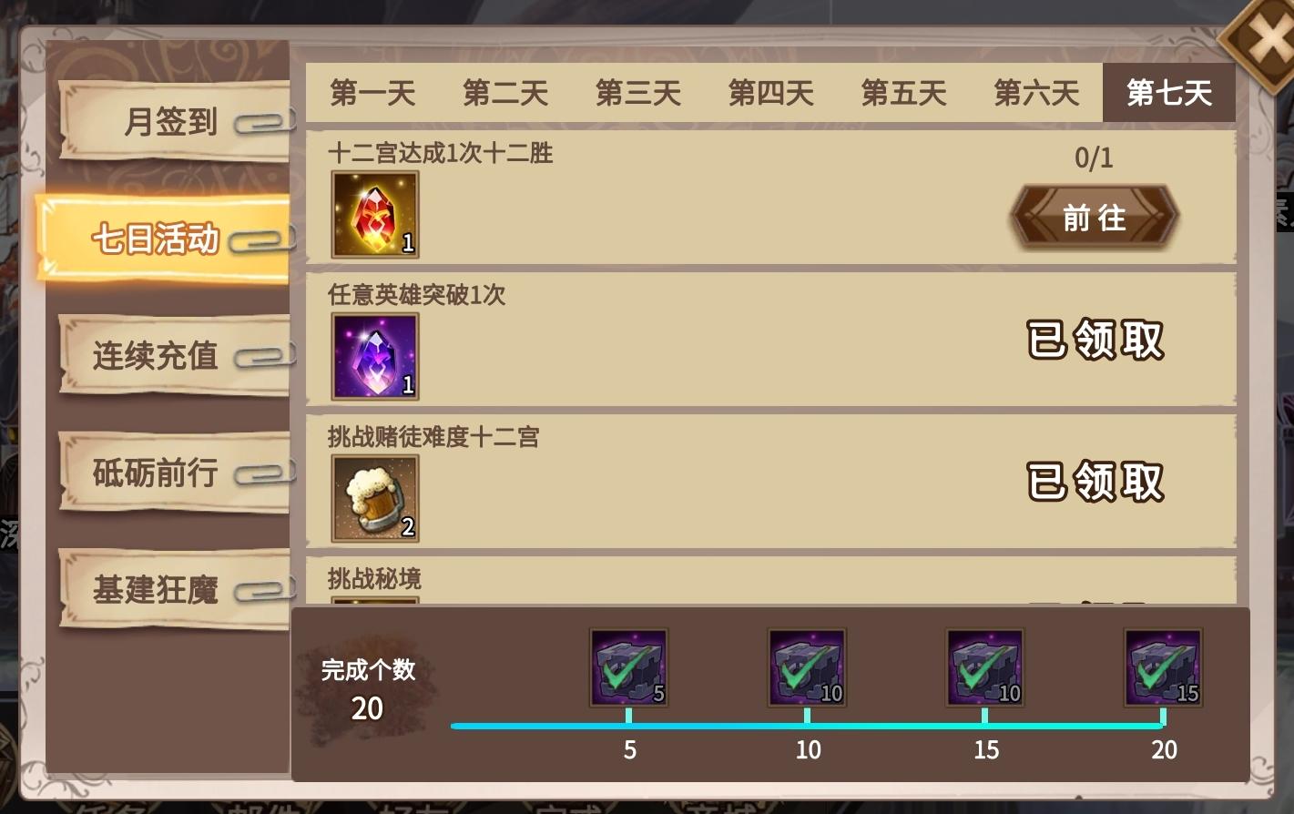 请问七日活动中,十二宫中达成1次十二胜为什么一直完不成?