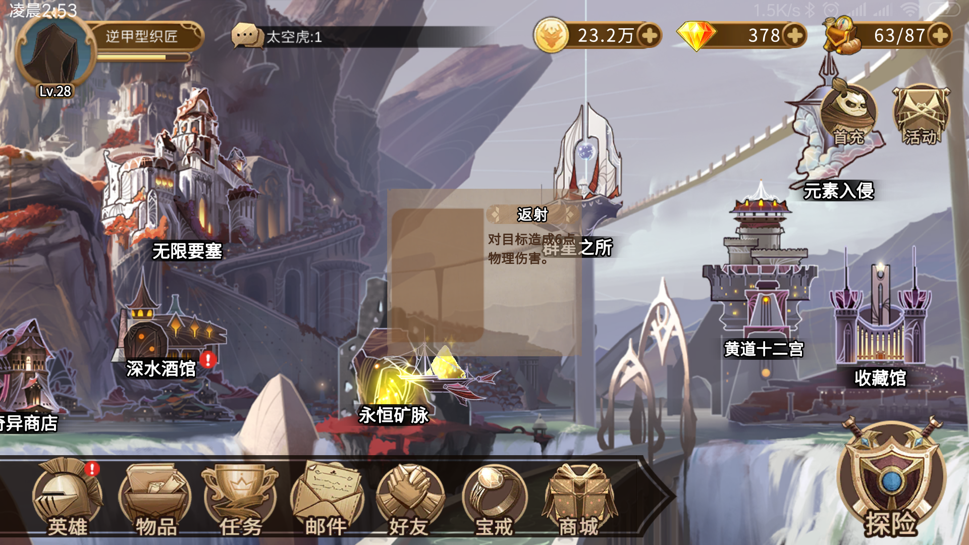 连着两个bug,打开炎心的卡牌界面后,卡牌总数显示异常,且不能正常显示所有已有卡牌;此时退出角色界面回到主界面会有个返射的弹窗卡在主界面。十分钟不到发现两组bug,人麻了