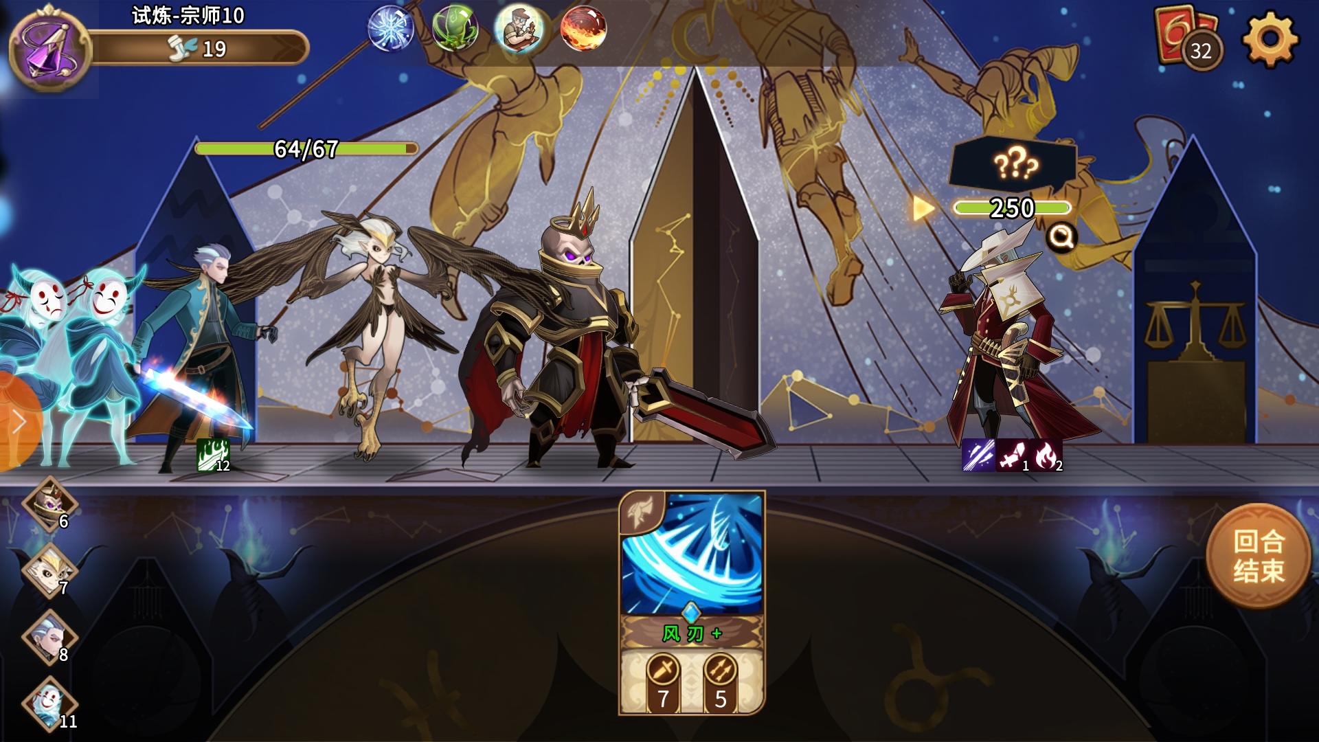 坐标三区 为了不扣血中途右上点了退出重新进战斗后第一回合只有“显示”鸟人地卡第二回合开始会显示火刀和鸟人的卡。***为什么我会说“显示”呢 因为我有每回合自动升级的魂 。因为游戏机制伪随机 我重复进入发现会显示不同的卡 而且有卡是升级过的。开始我以为过了这个 下一关会修复 可是并没有【关了游戏 重进可破】