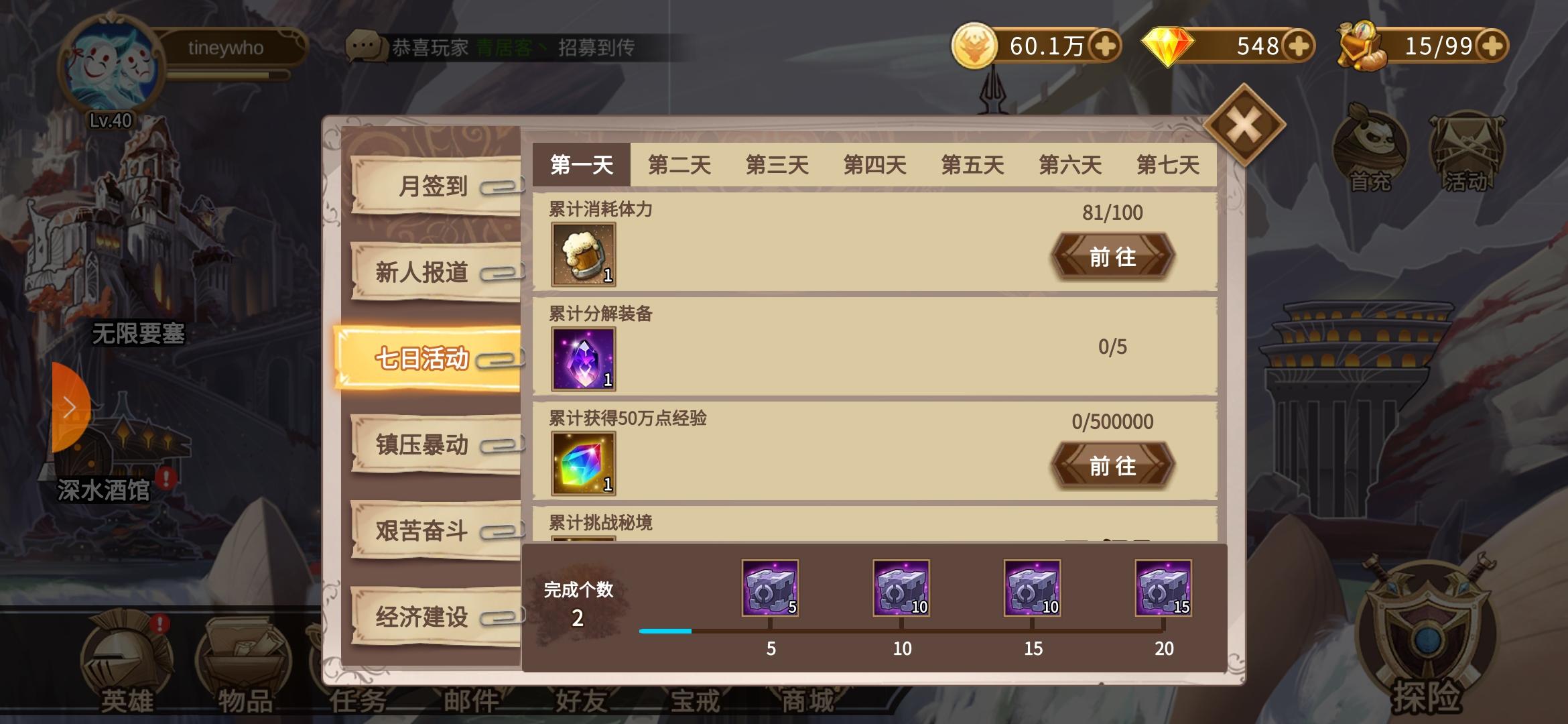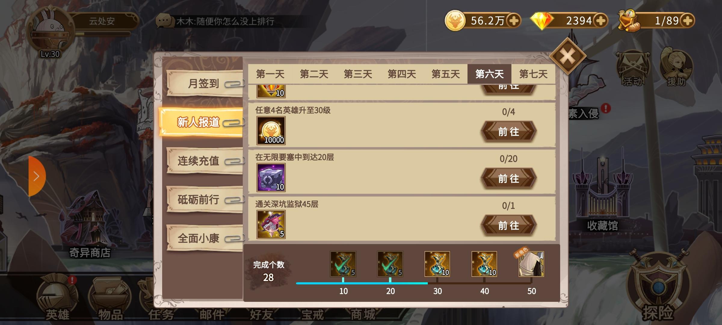 七日活动里面的50w经验活动完成不了!体力用了经验不长!