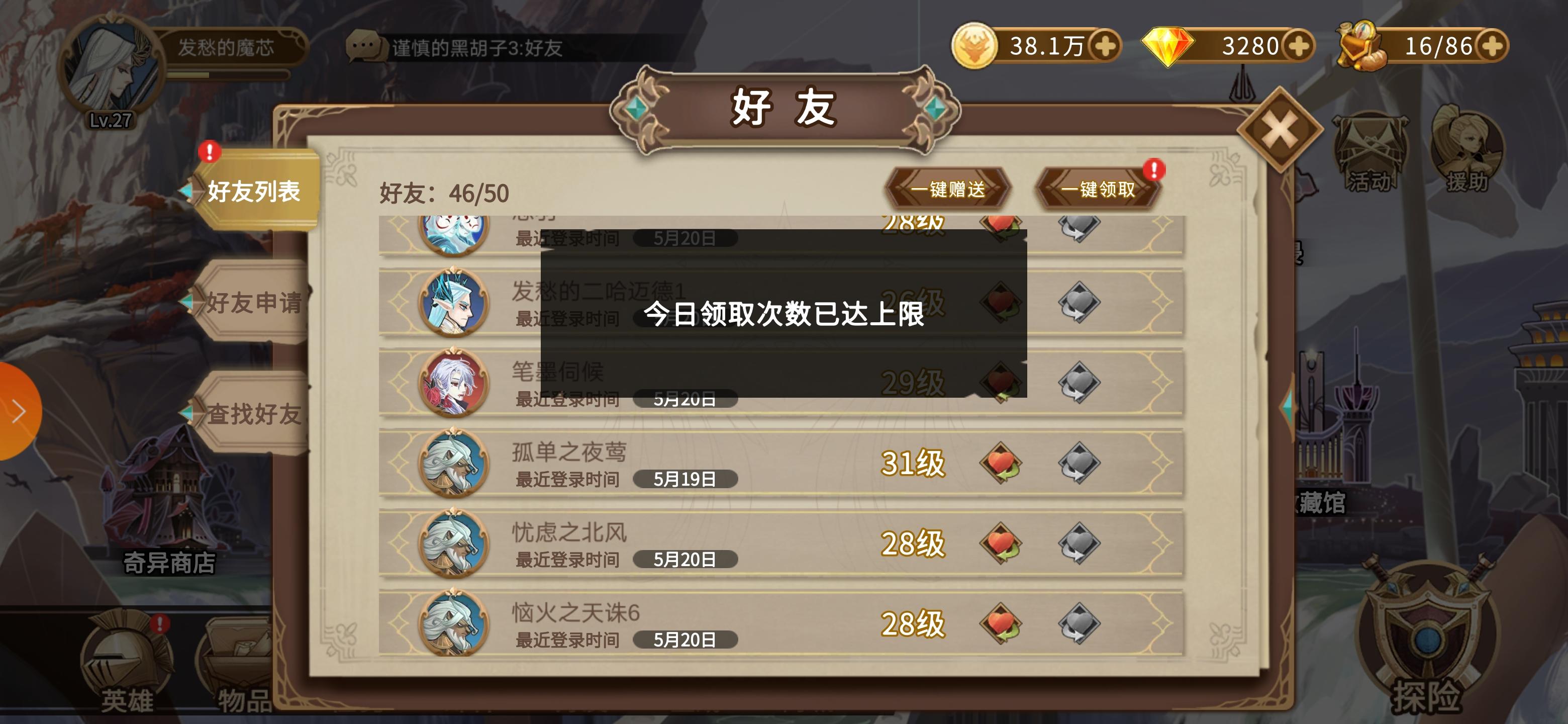 所有的一键XX都不能用么,看到其他人说一键装备吞装备,好友送的体力一键领取体力一点也没加啊,还上限了😭😭