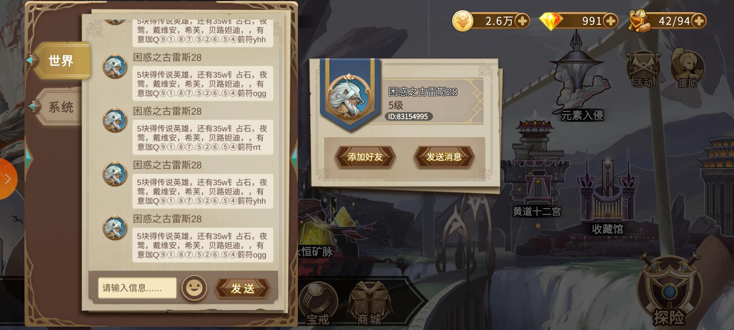 3服公屏骗子广告一直刷,聊天系统干啥用的,确定不管管?建议出屏蔽或者举报,再提高下发消息的等级。