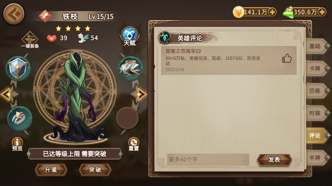 建议多出一点橙卡以外的三个阶级的低级卡,好让我们平民爬塔方便点,还觉得有趣^O^;另外,评价上面还有疑似邀请人作弊的注意一下啊官方。。。-_-||