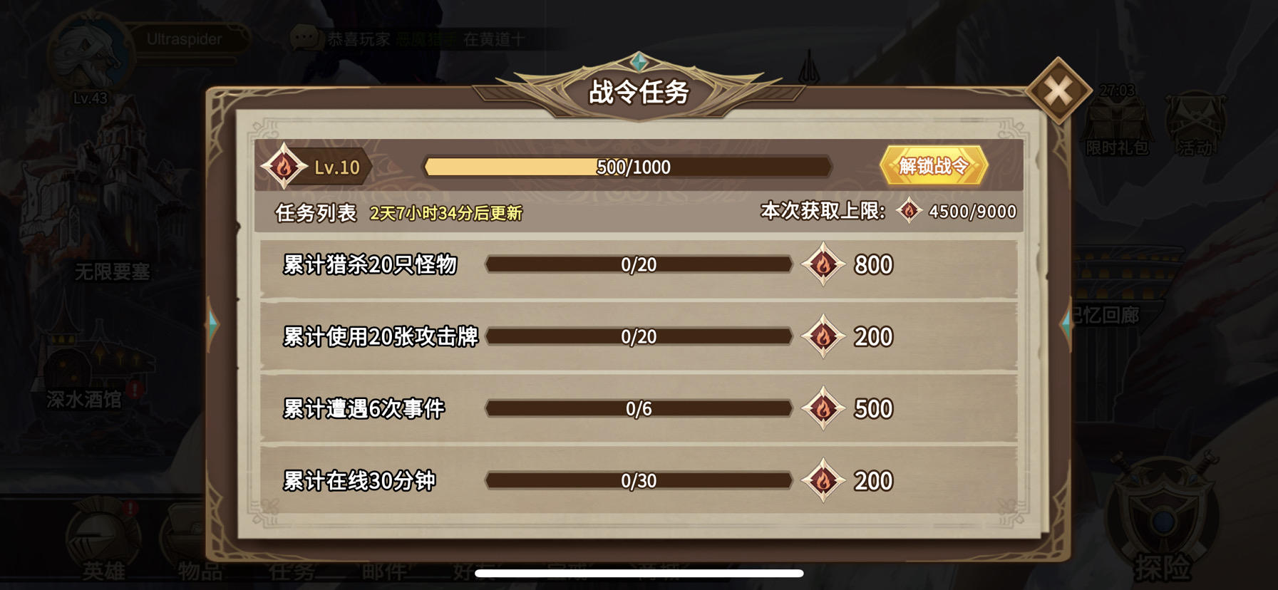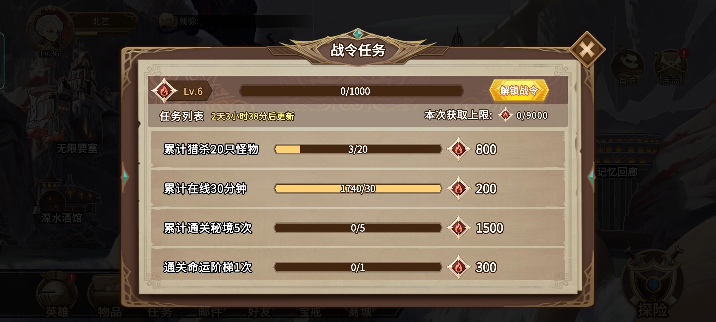 偶尔在一些其他界面狂点没反应还有啊,玩的时候我浮窗回个消息这游戏就断了要重连不至于吧。新活动莫拉克斯银盾bug会导致进秘境没有牌新活动莫拉克斯战令任务完成了,但显示还没做。还有做完了这个战令任务,进度条满了,但不显示领取。(如图,硬生生100/30的在线时间)。这个大概是同步太慢了,完成任务要好久才显示完成,显示了又要好久才能点领取?账号异处登录还没修好。最后赔我银盾bug的秘境陈旧纸鹤😔🙄