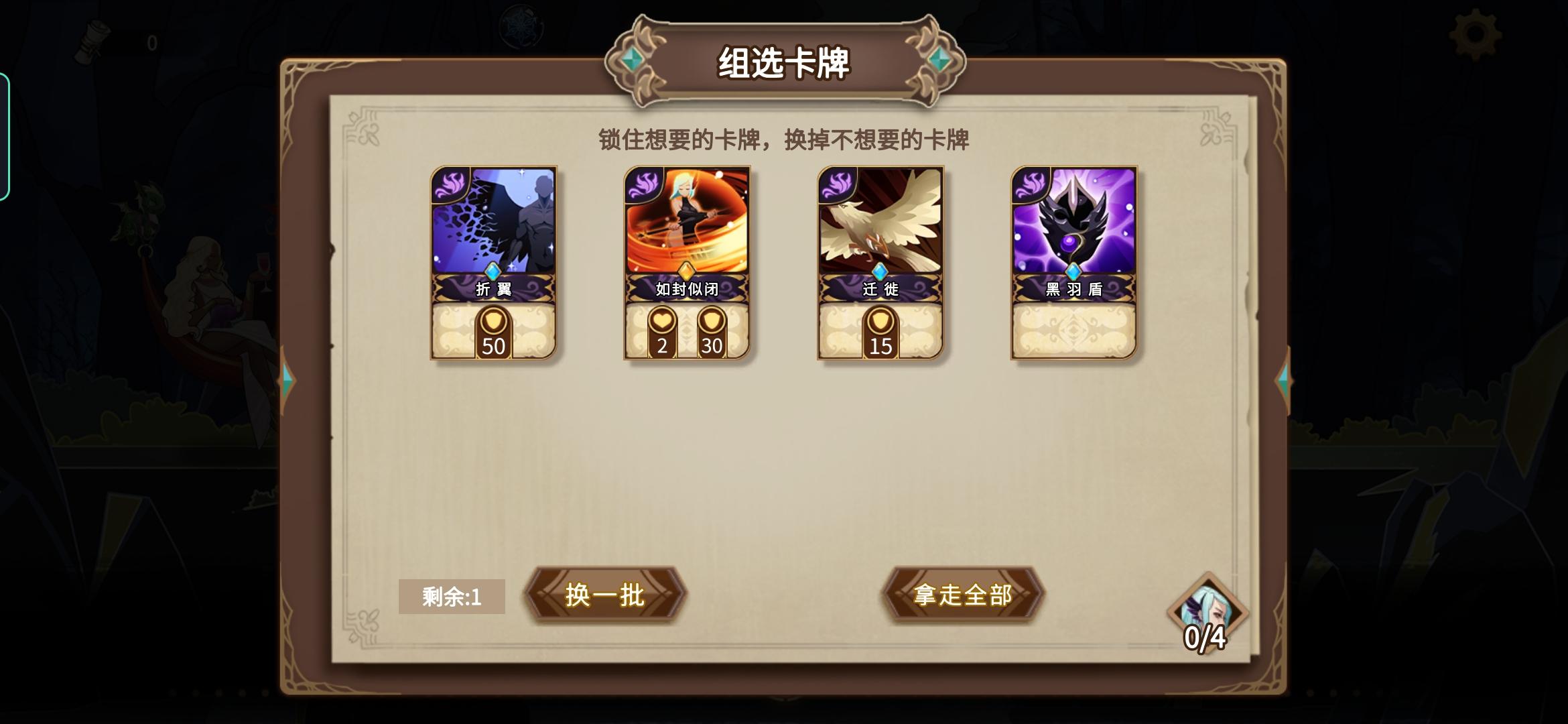 我点了拿走全部结果就没有反应了下一个英雄的卡牌还选不了