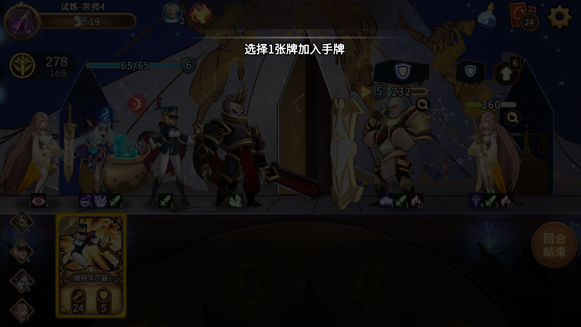 如图,打十二宫时从左数第二个角色的卡牌(七色?+)打出来后无法操作,只能退游戏重进刷新