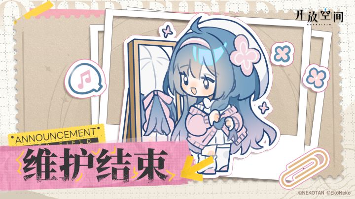 亲爱的队长:《开放空间》停服维护更新已完成。1.所有4月20日23:59前注册登录的队长:我们已将补偿【星石*700、自选招募券*1、限定券*10、映像[早上好]*1、映像[小小诗歌]*1、小型体力药剂*5、小型精力药水*5】发送至您的邮箱,请各位队长注意查收。2.所有4月20日23:59后注册登录的队长:我们会将补偿【自选招募券*1、映像[早上好]*1、映像[小小诗歌]*1】发送至您的