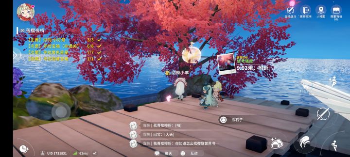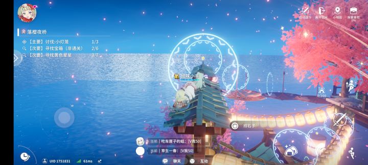 主要任务打倒三个红色小灯笼🏮次要任务找到六个普通宝箱隐藏任务一找到七个星星⭐隐藏任务二找到一个隐藏宝箱出生地身后处尽头大石头上第一颗星星⭐摩天轮左侧台阶上黑罐子里第二颗星星⭐黑罐子旁跳雨伞跳到黄灯笼上有一个普通宝箱拿完宝箱跳到左边的台子上,可以看到有一个往左上方吹的粉色风向,镜头转过去就可以看到风向的尽头。在左侧绿色房顶的左侧是第三颗星星⭐房顶下面那层有